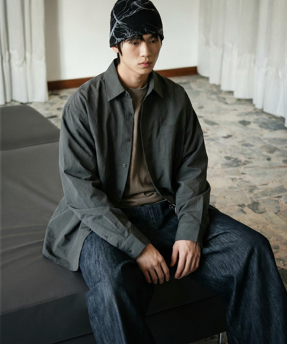 오버핏 워시드 코튼 셔츠 [블랙]