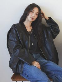 [정려원 착용] V-neck Faux Leather Blouson Jacket SL6SM604-10