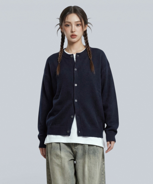 안토 라운드넥 버튼 니트 가디건 4 Color [ANBG_6001]