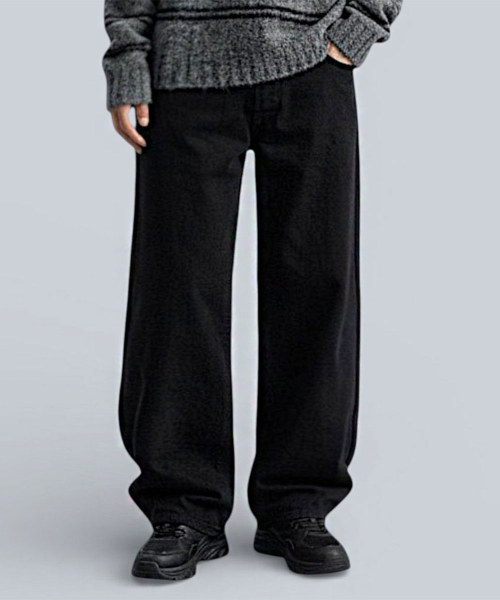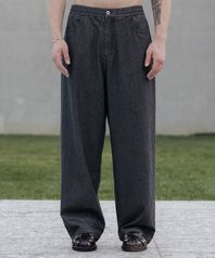 쿨 플로우 데님 와이드 밴딩 팬츠 [로우 블랙]