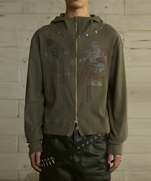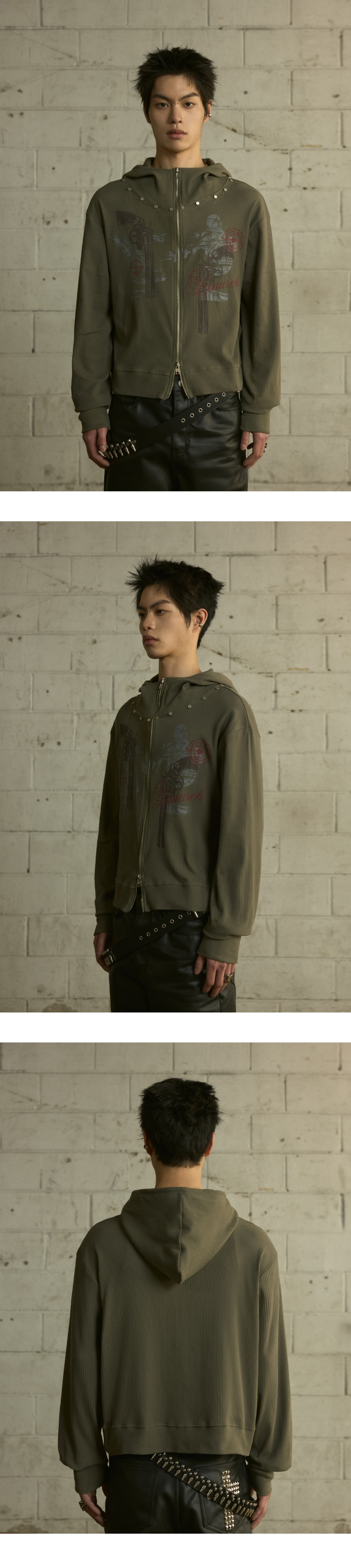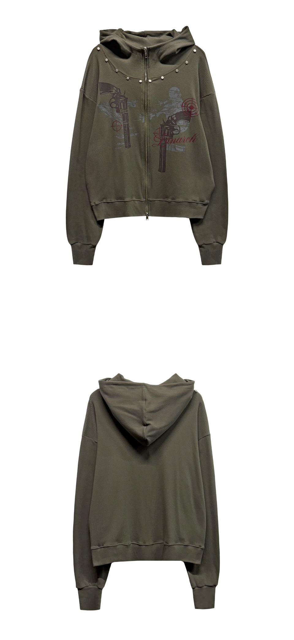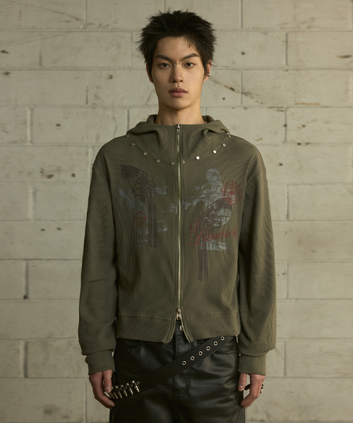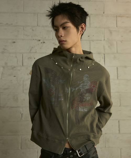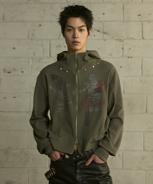 [0117] 하이넥 리벳 집업 후디 - 카키