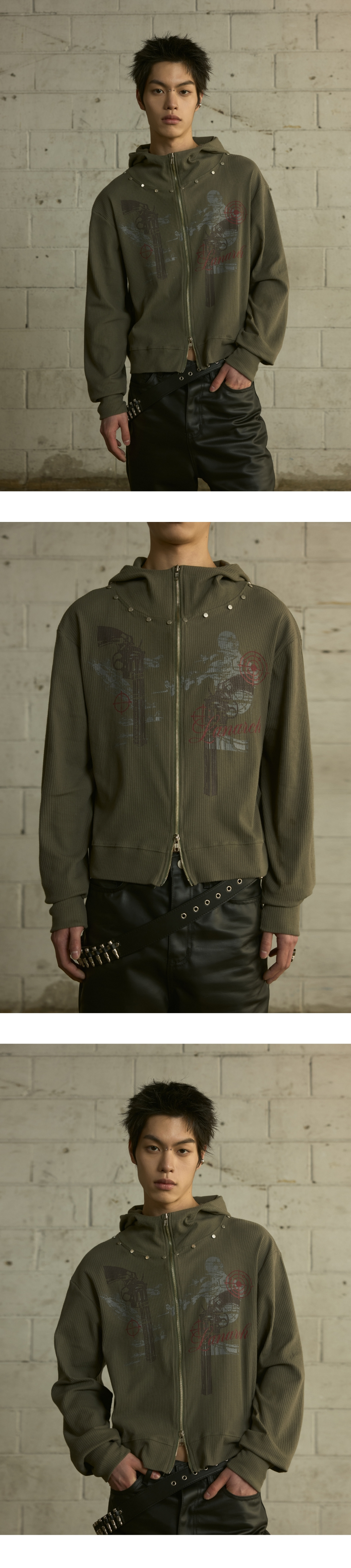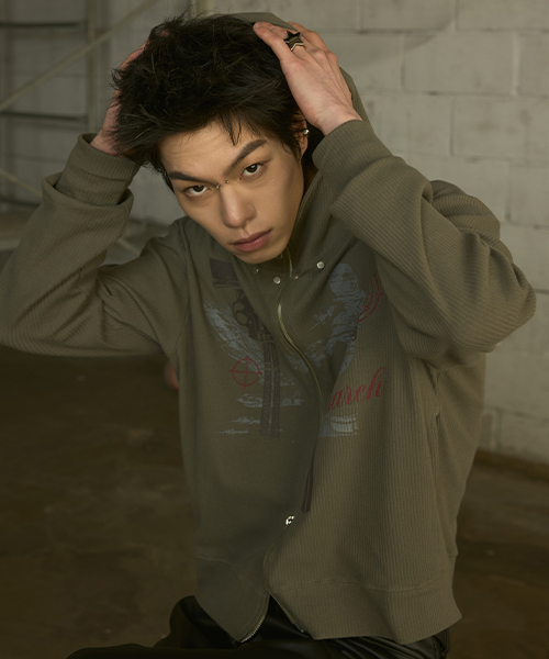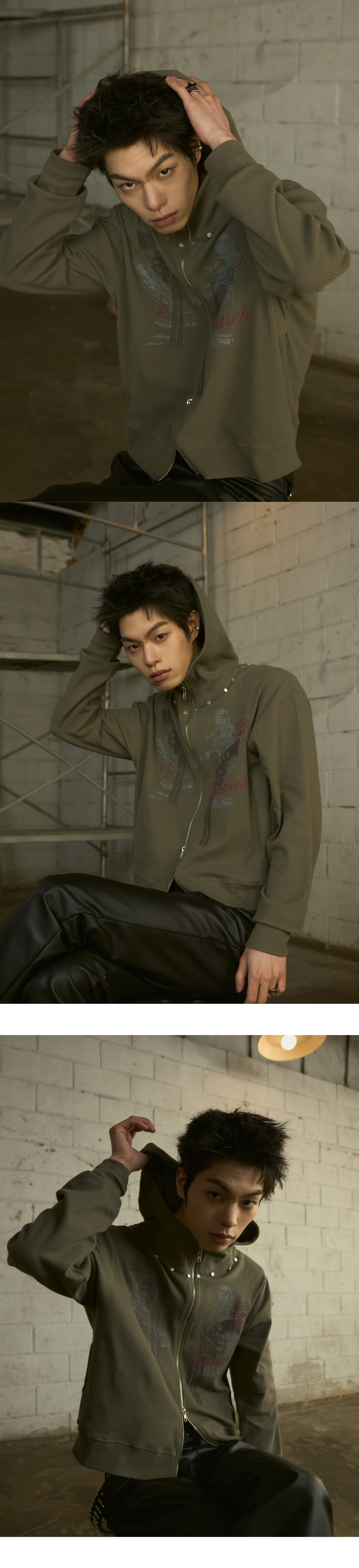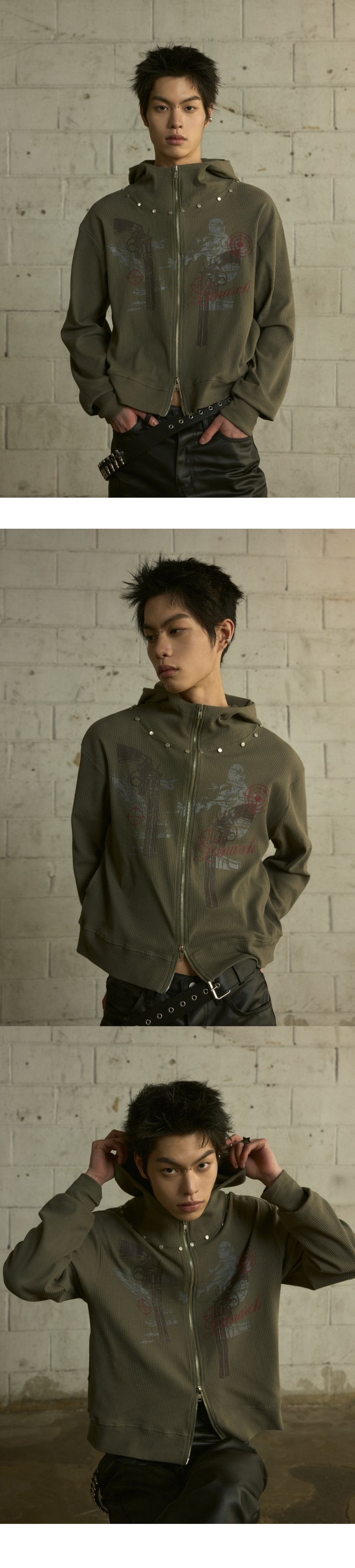 [0117] 하이넥 리벳 집업 후디 - 카키