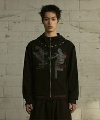 [0118] 크로스 자수 집업 후디 - 블랙