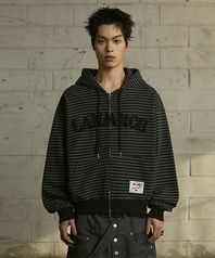 [0116] 로고 아플리케 스트라이프 집업 후디 - 블랙