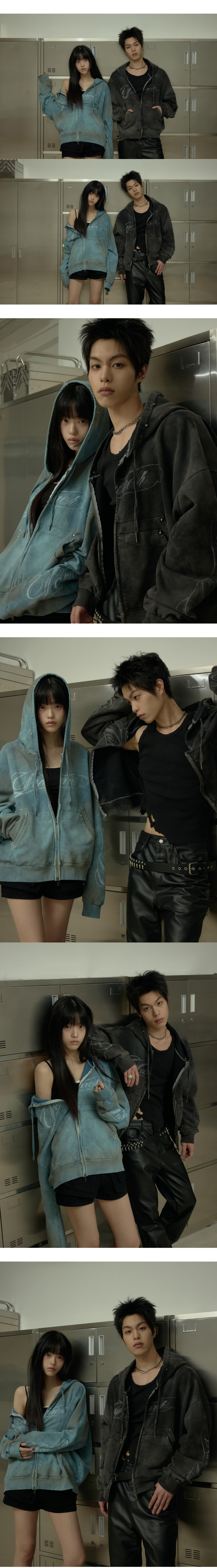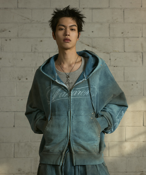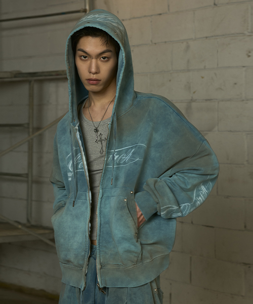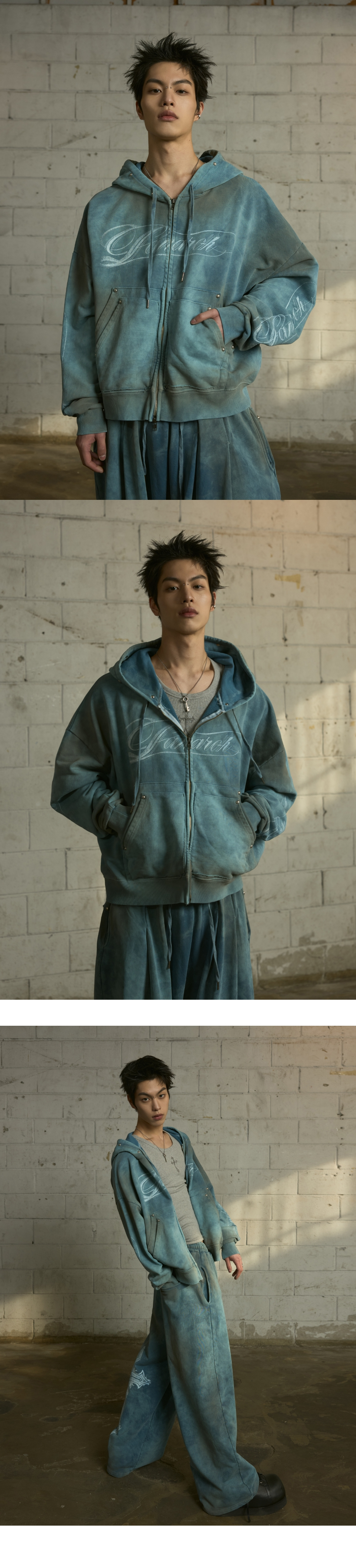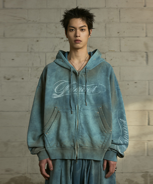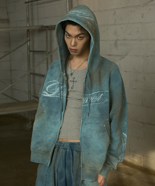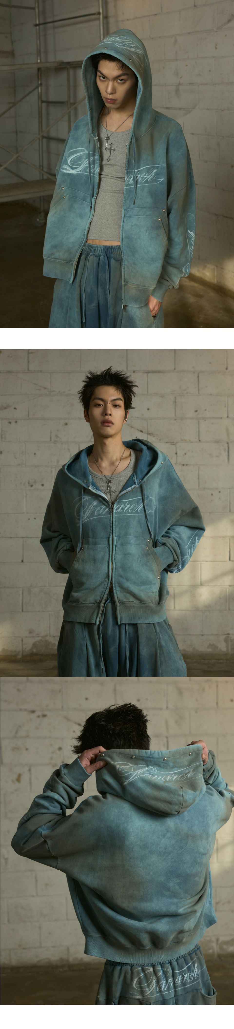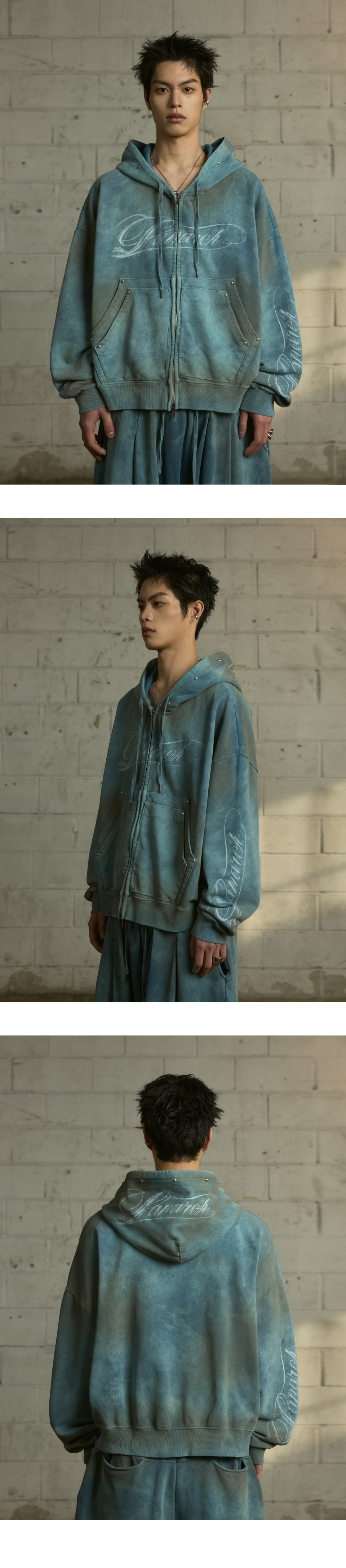 [0112] 빈티지 워시드 스터드 로고 집업 후디 - 더스티 틸