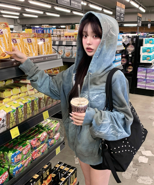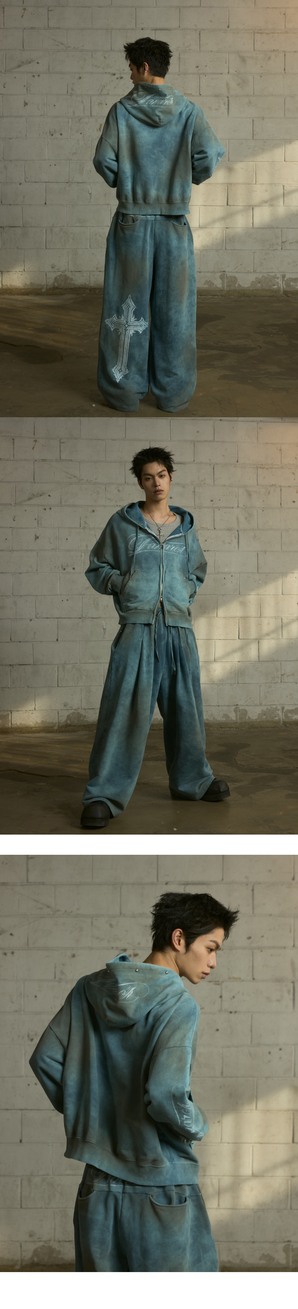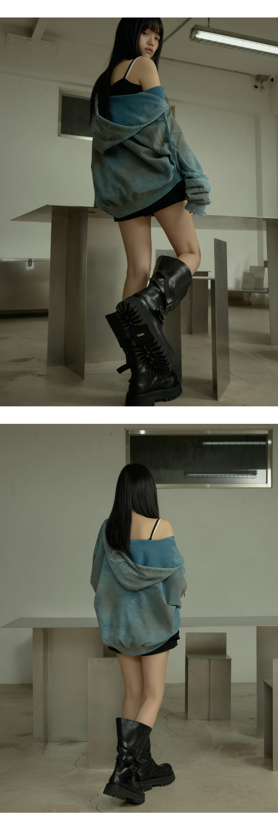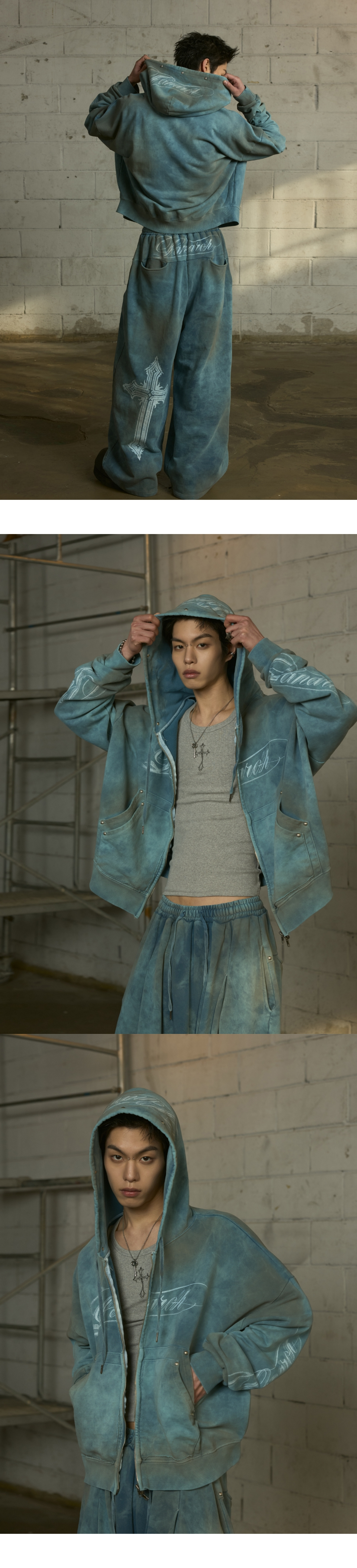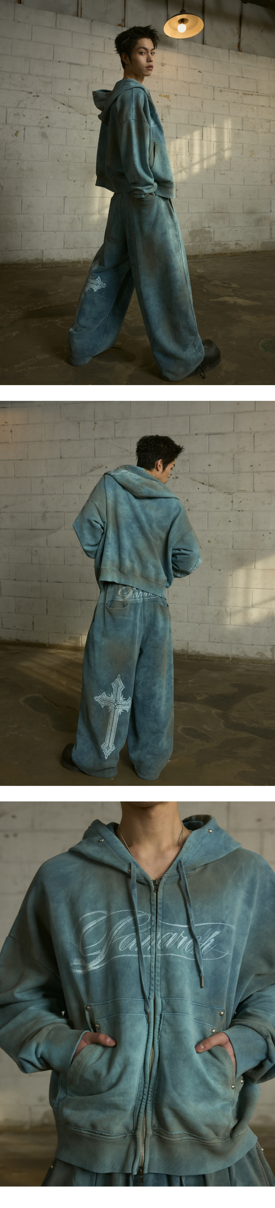 [0112] 빈티지 워시드 스터드 로고 집업 후디 - 더스티 틸