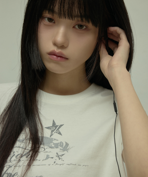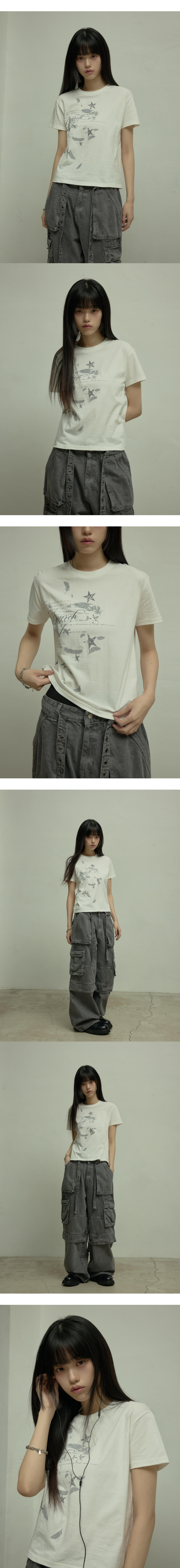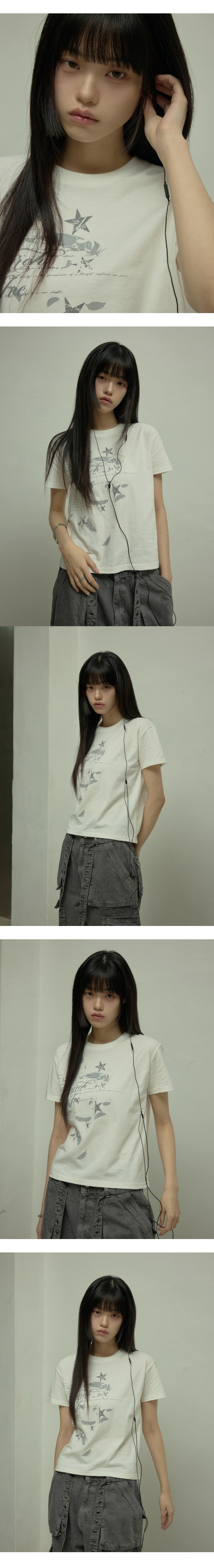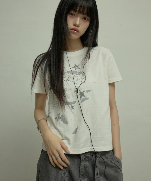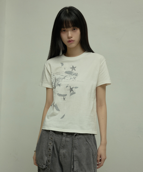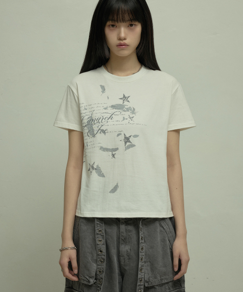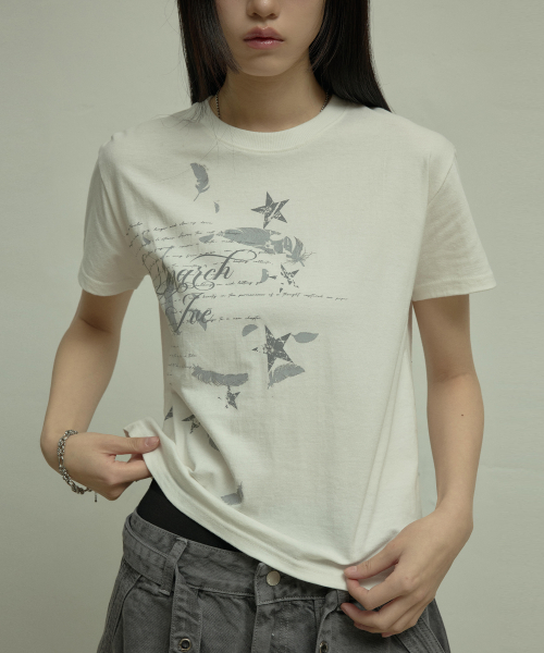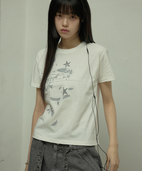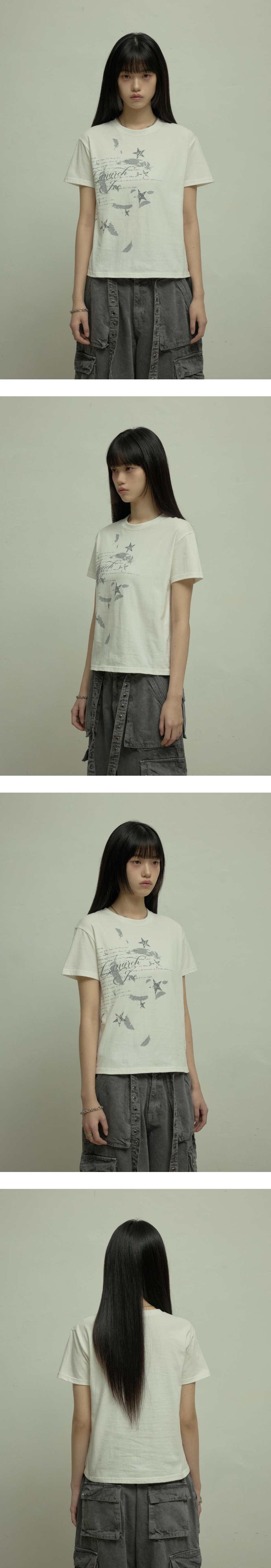 [0096] 스타 페더 그래픽 슬림 티셔츠 - 아이보리