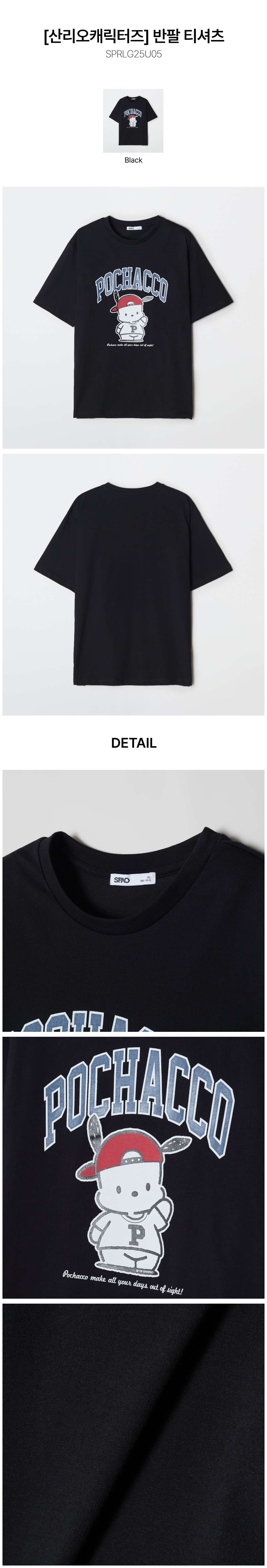 [산리오캐릭터즈] 반팔 티셔츠(BLACK)_SPRLG25U05