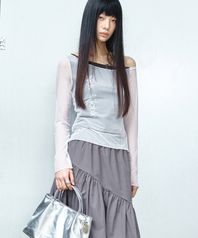 ASYMMETRIC LAYERED LOGO TOP_IVORY