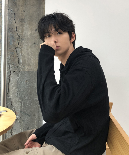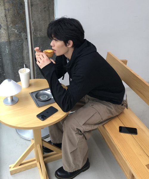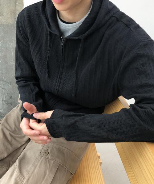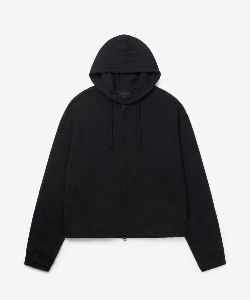 크롭 핑거홀 골지 후드집업_BLACK