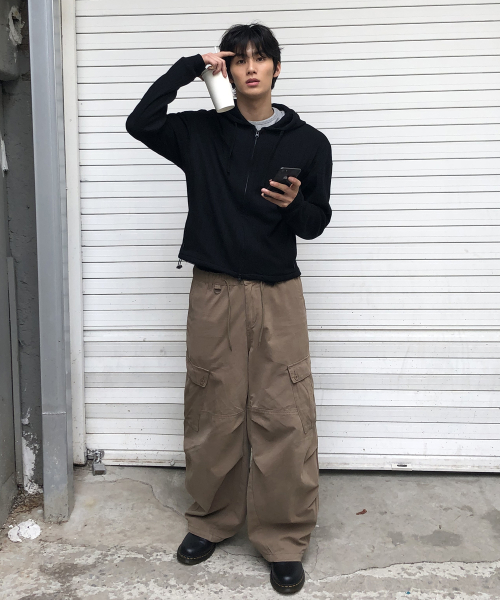 D링 워시드 커브드 카고 밴딩 팬츠_(2color)