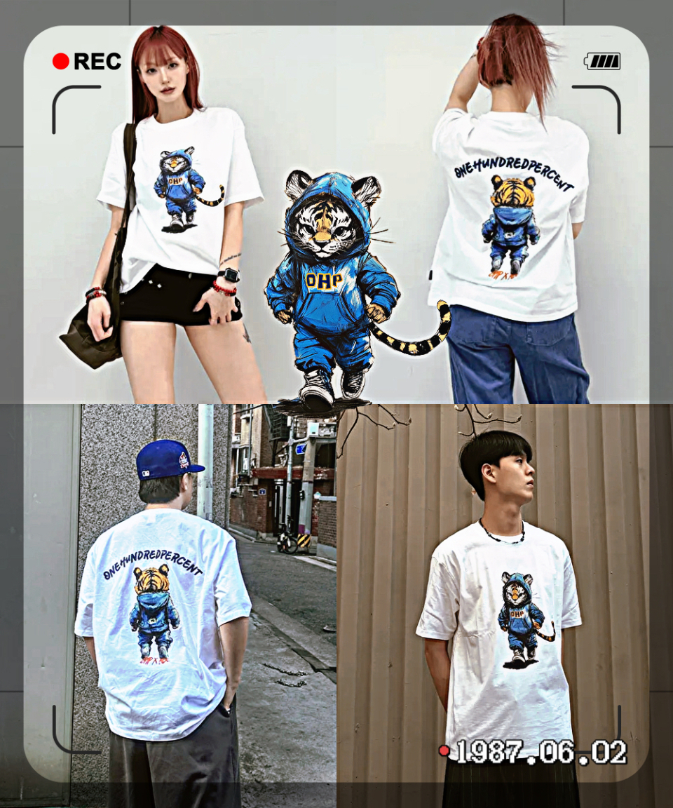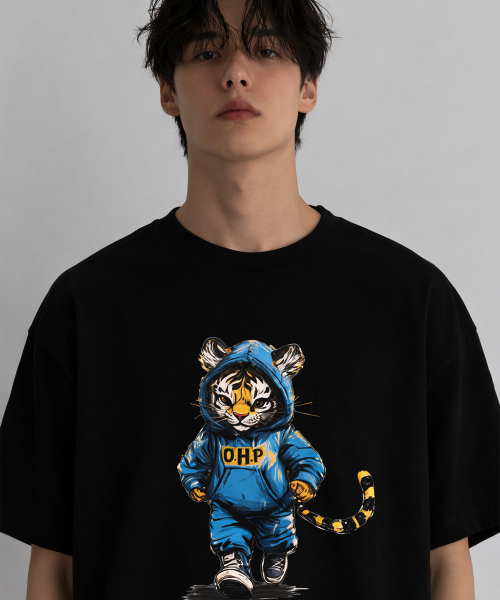 OHPXHARMONIA 베이비타이거 세미오버 반팔티셔츠