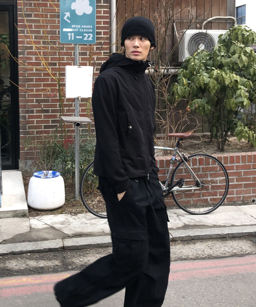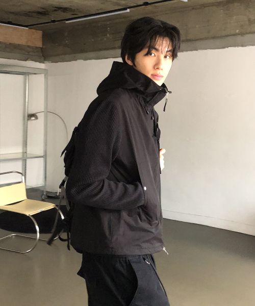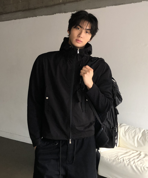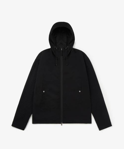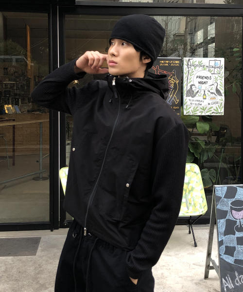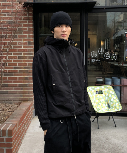 니트 나일론 후드 윈드 브레이커_BLACK