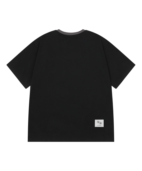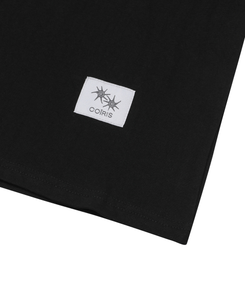 모티프 자수 스트라이프 레이어드 긴팔 티셔츠 BLACK