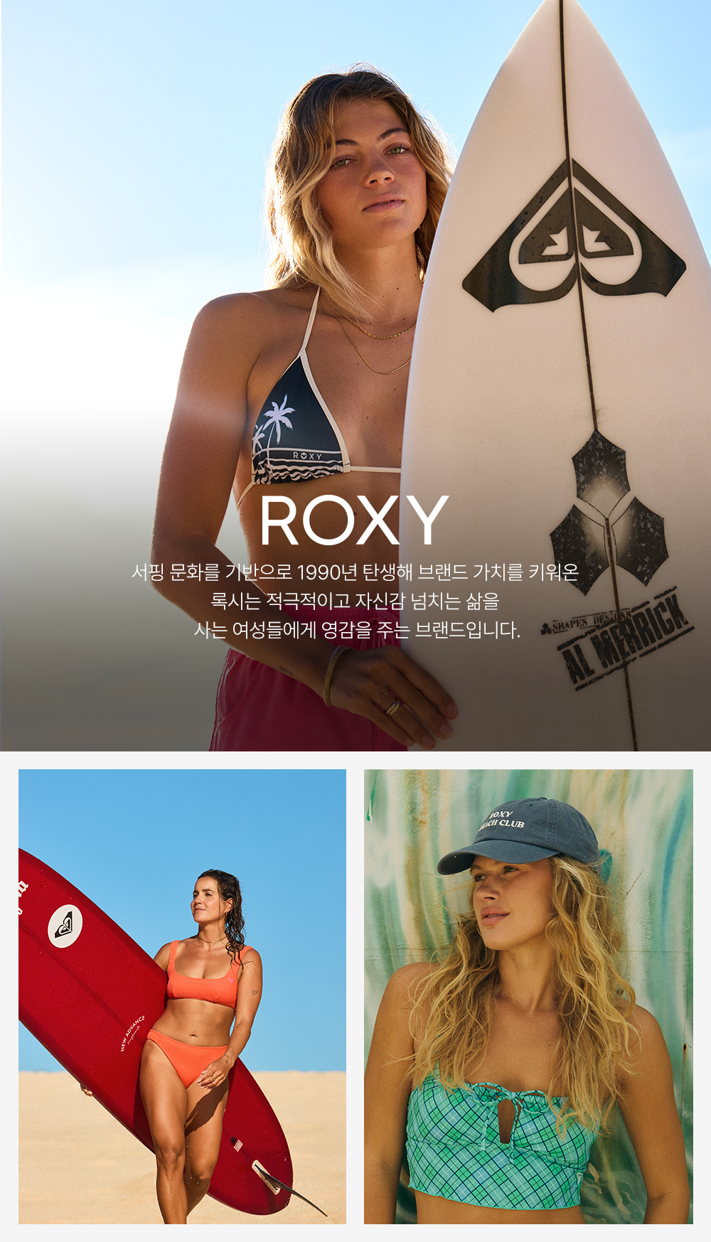 록시(ROXY)는 서핑과 스노우에서 영감을 받아 자유롭고 역동적인 여성의 라이프스타일을 스타일과 퍼포먼스의 균형으로 표현하는 액티브 브랜드입니다.