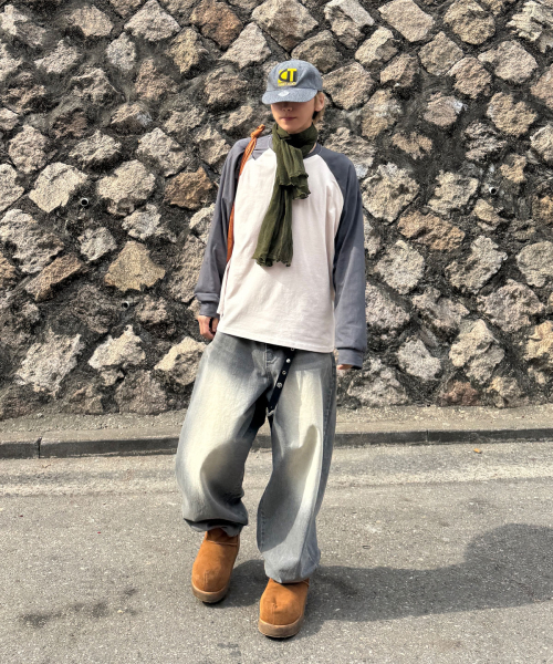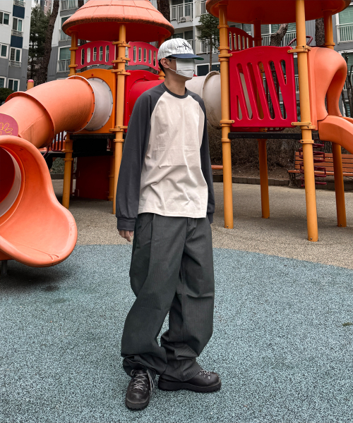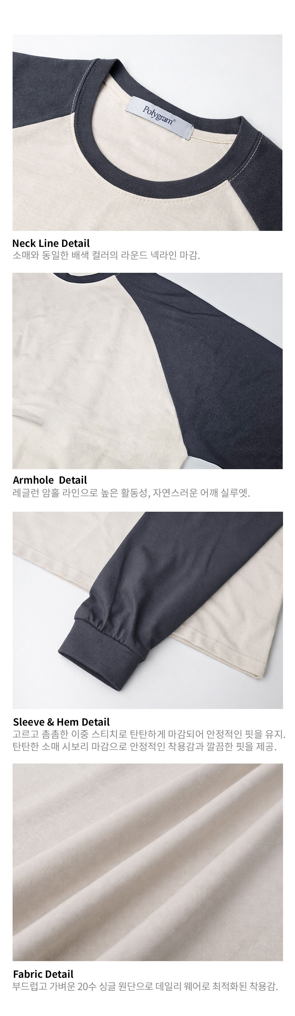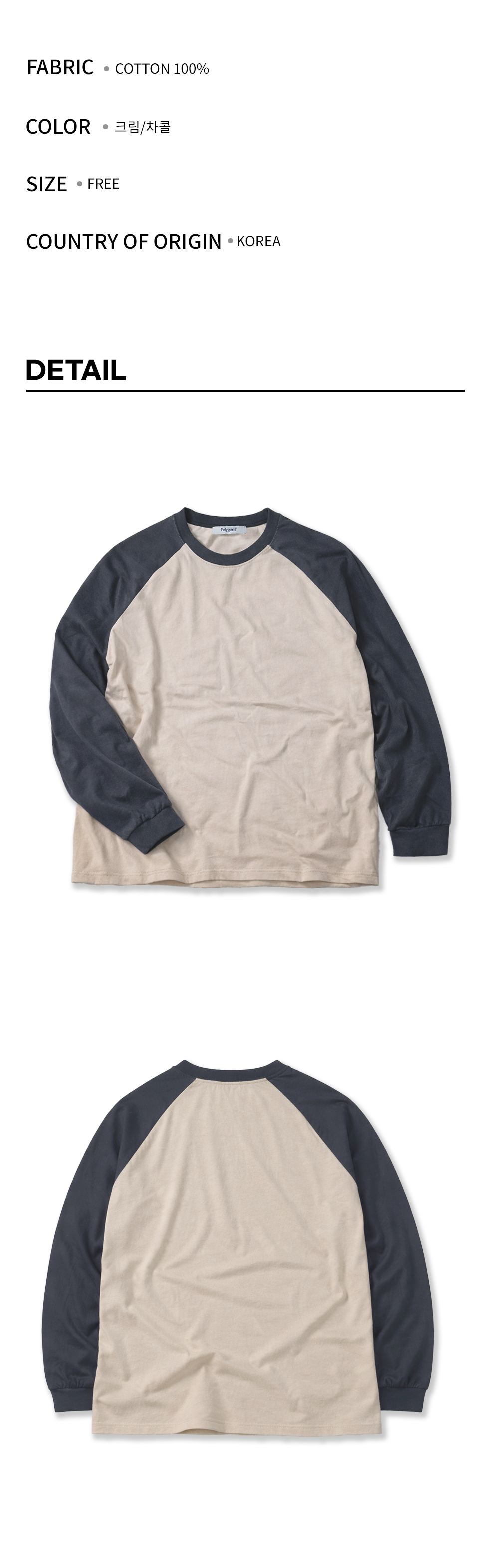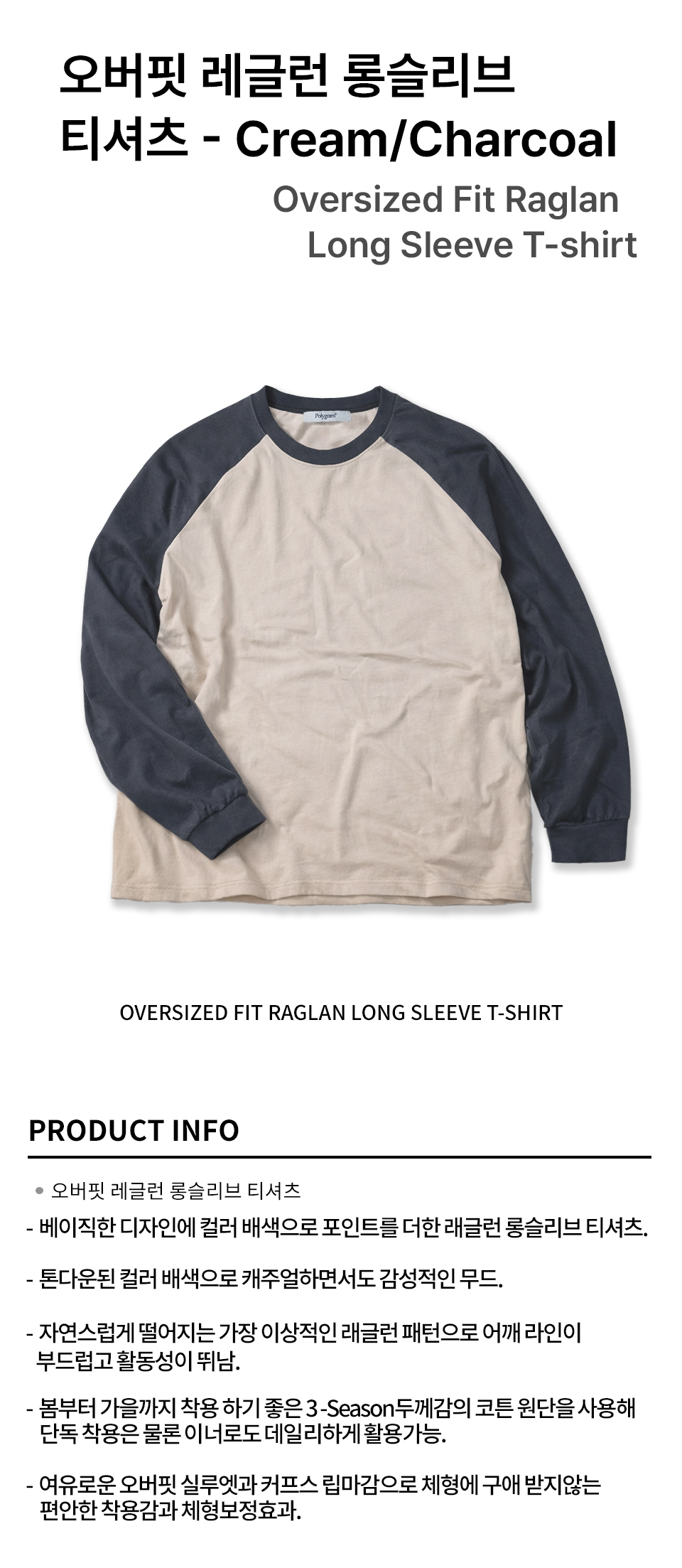 오버핏 레글런 롱슬리브 티셔츠 - Cream/Charcoal