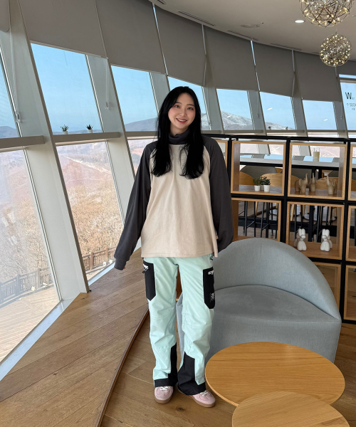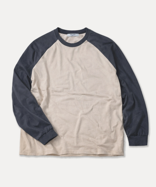 오버핏 레글런 롱슬리브 티셔츠 - Beige/Charcoal
