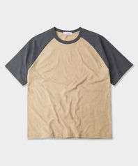오버핏 레글런 반팔 티셔츠 - Beige/Charcoal
