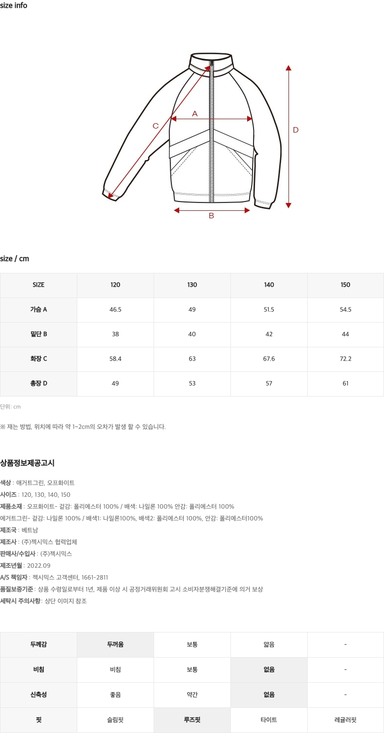 소매와 밑단에 신축성이 좋은 밴드를 삽입하여