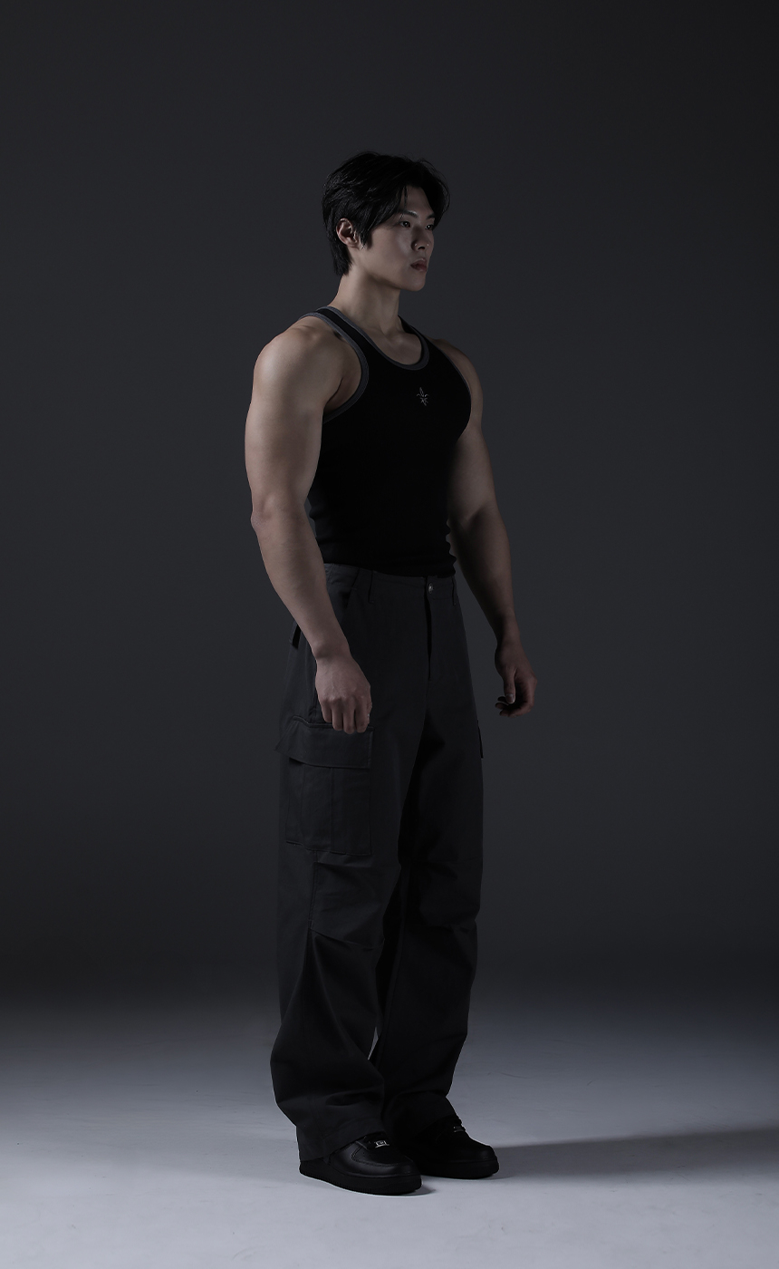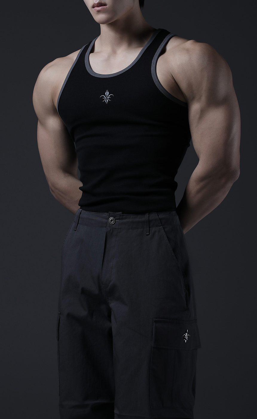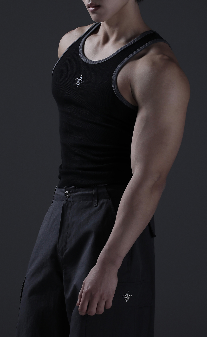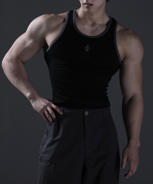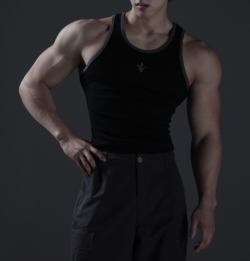 노블 레터링 밴드 머슬핏 슬리브리스