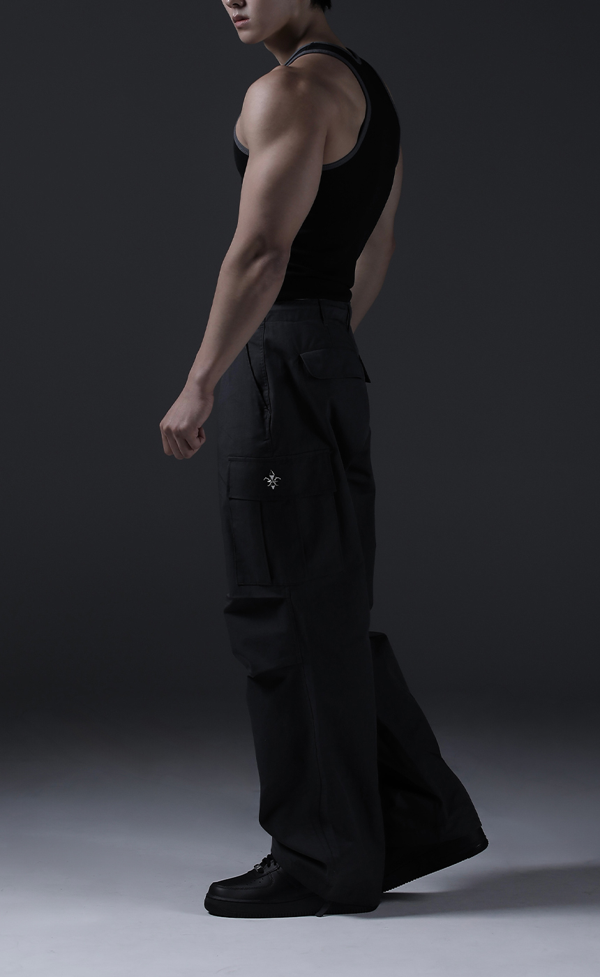 Irregular Logo embroidery Logo Sleeveless - BLACK