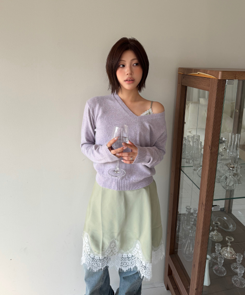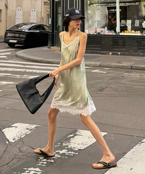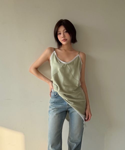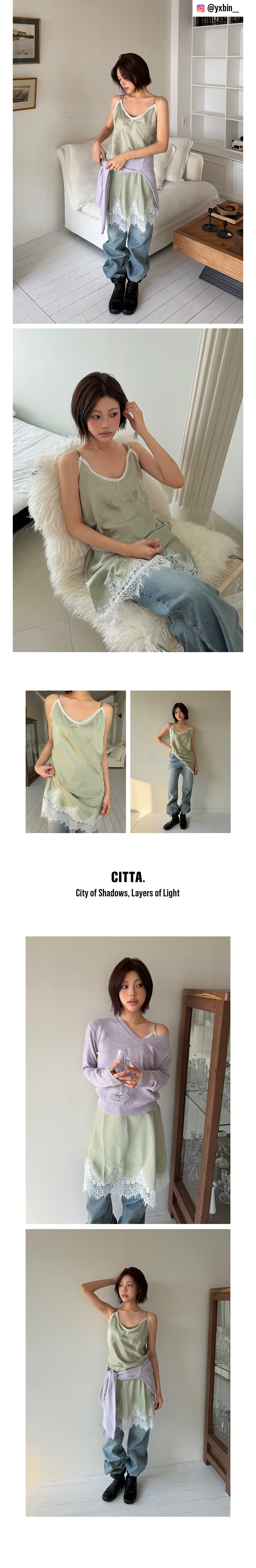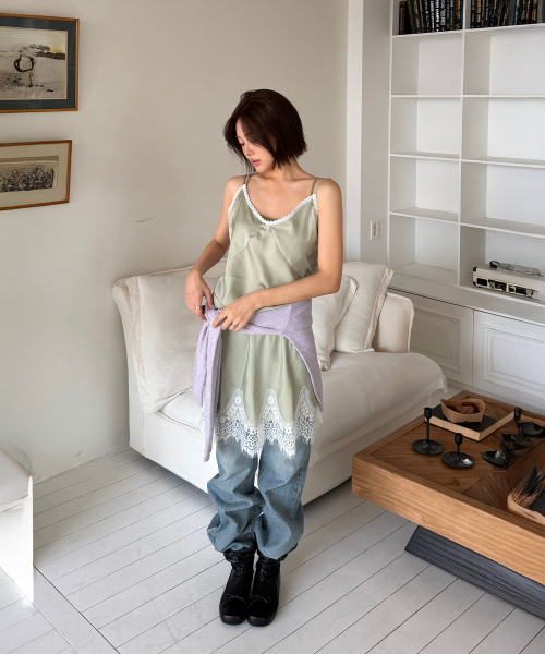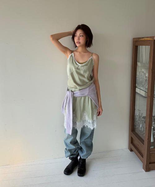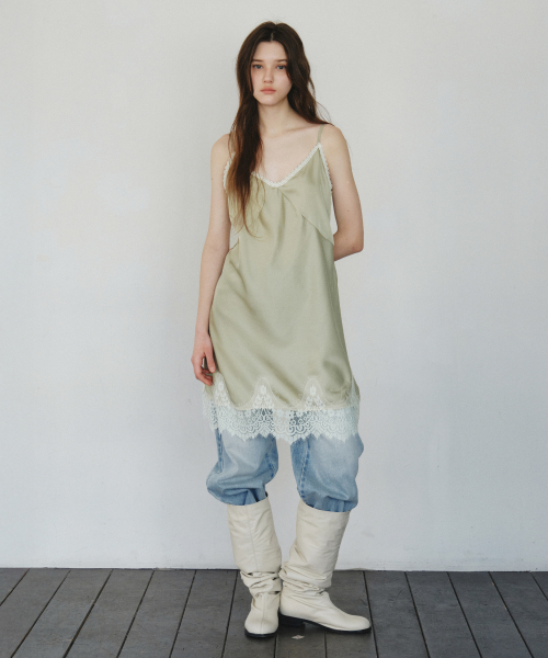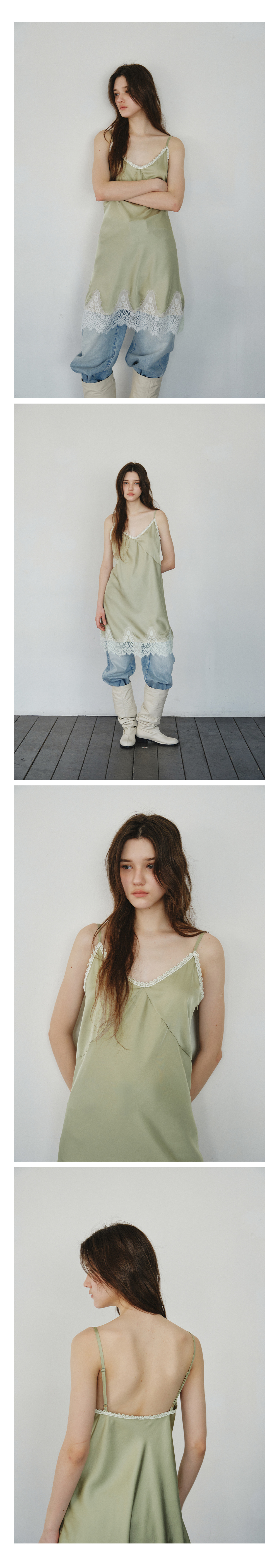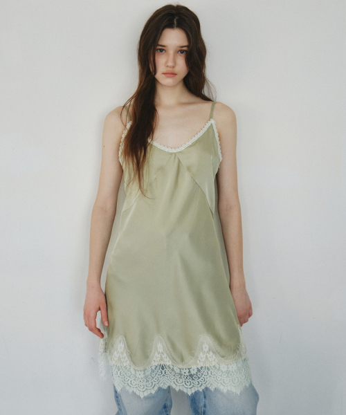 Satin Layered Lace Slip Dress_CTOP714(Green)