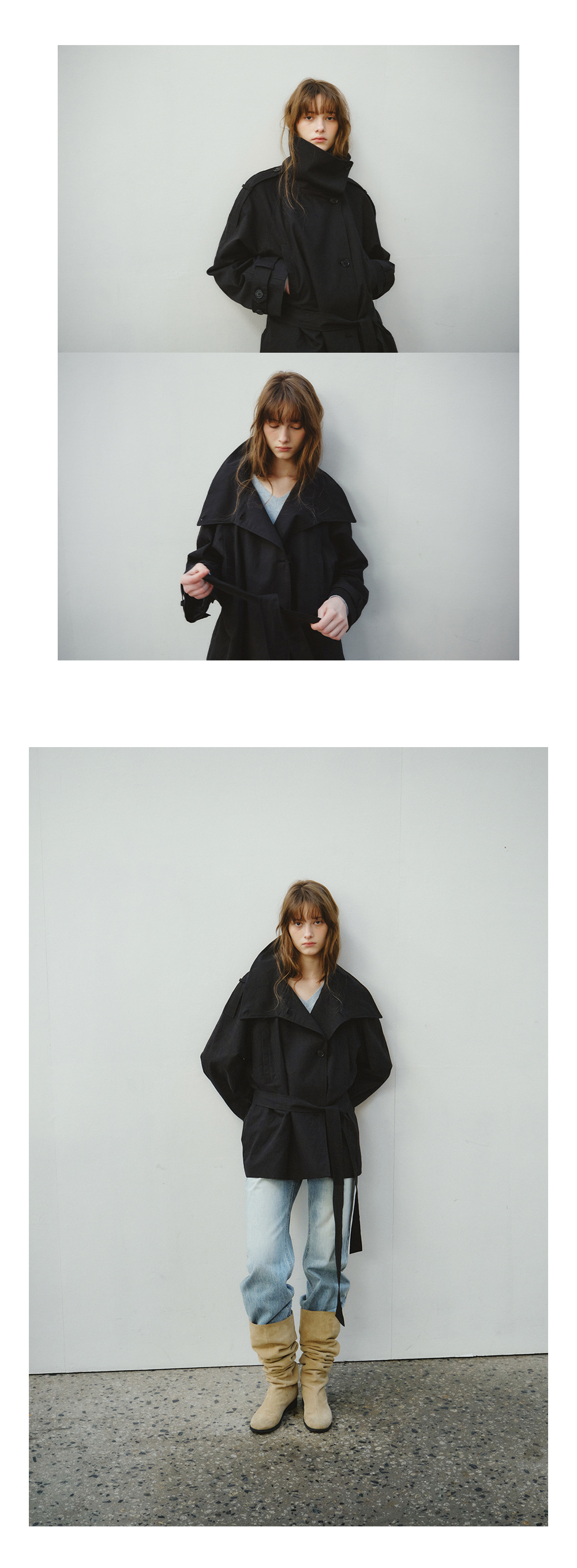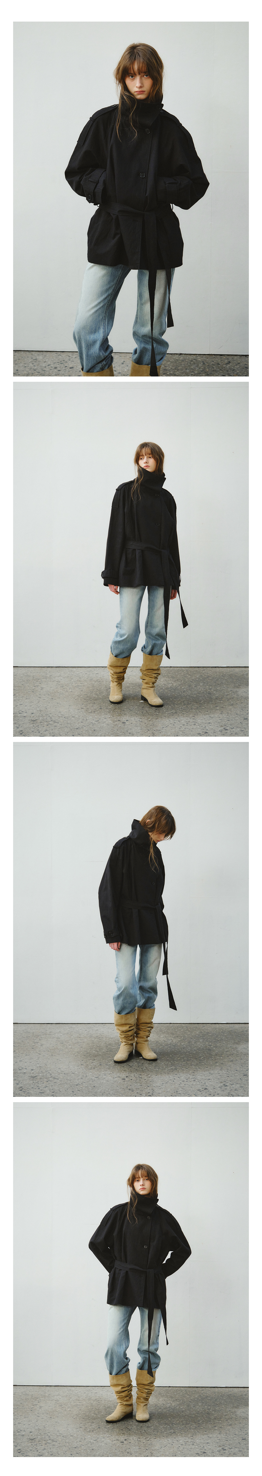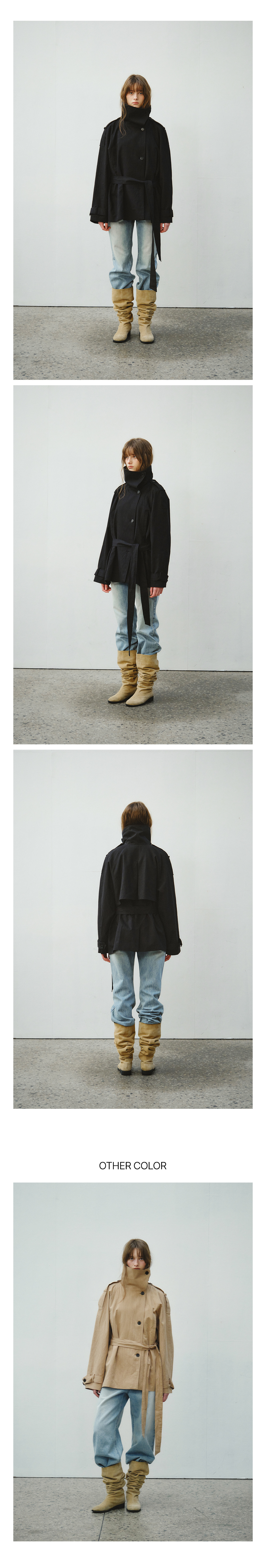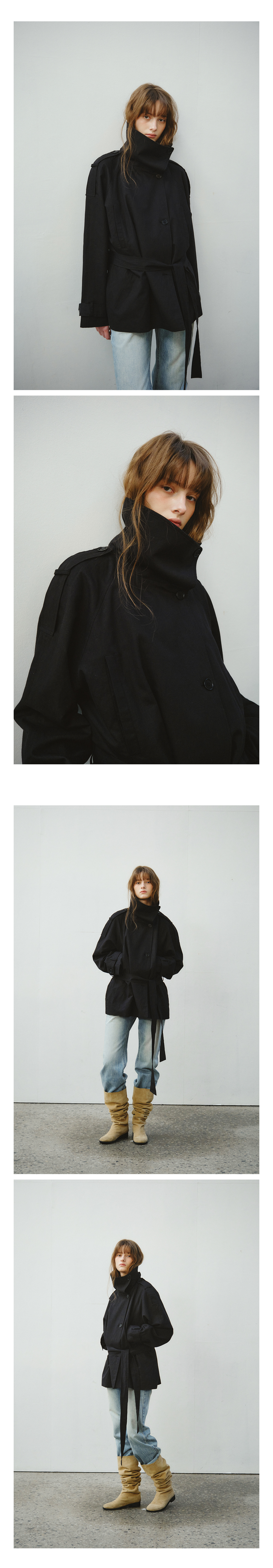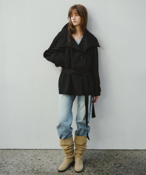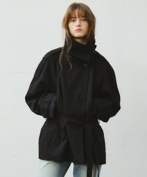 Linen Blend High-neck Half Trench Coat_CTO152(Black)