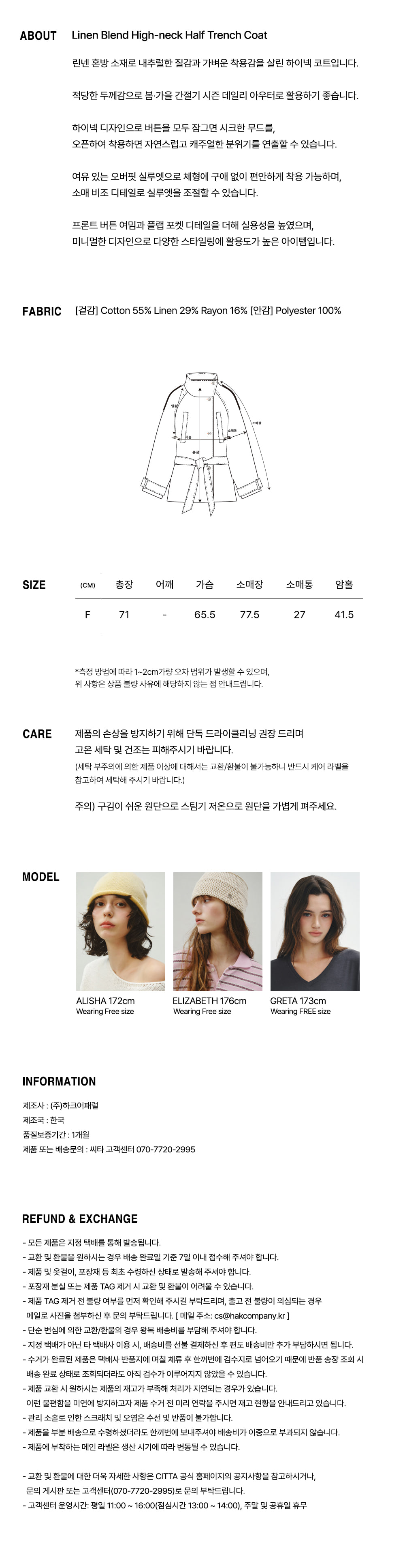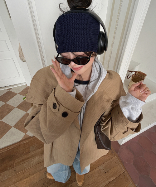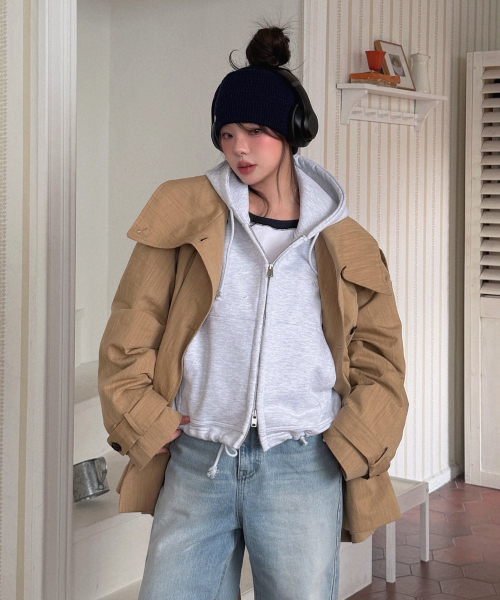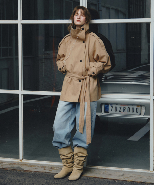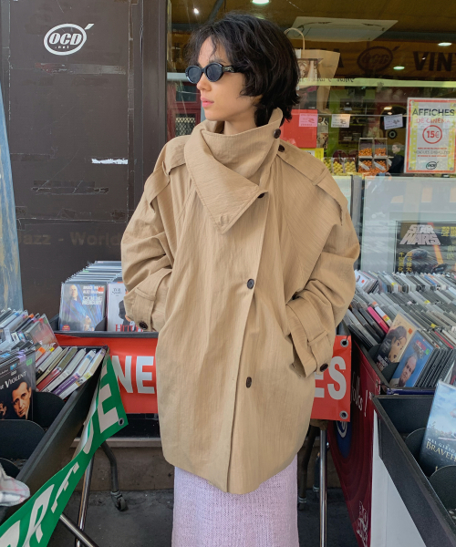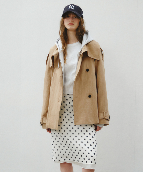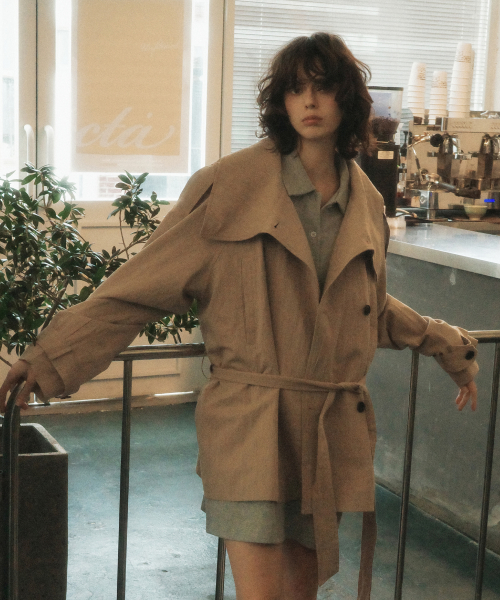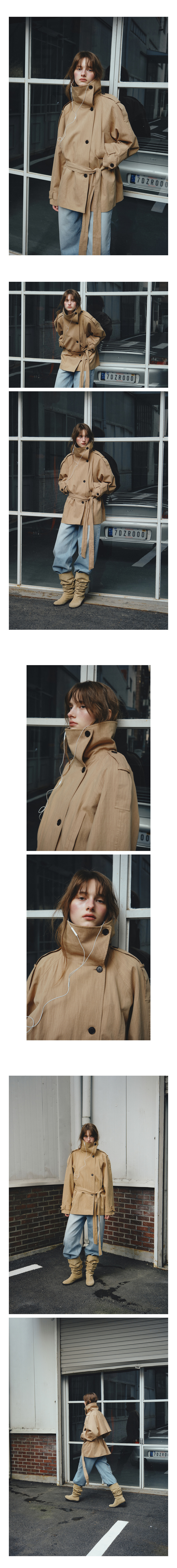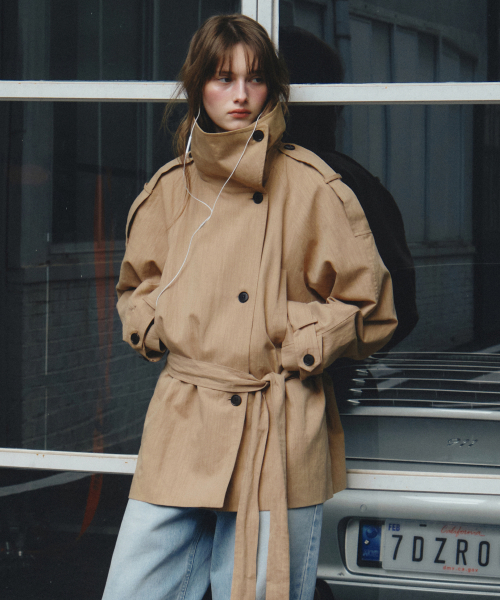 Linen Blend High-neck Half Trench Coat_CTO152(Beige)