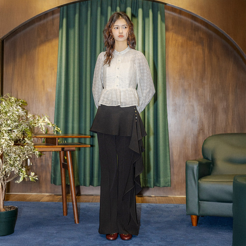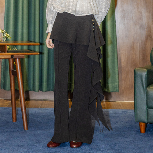 DD_Ruffle overlay pants_BLACK