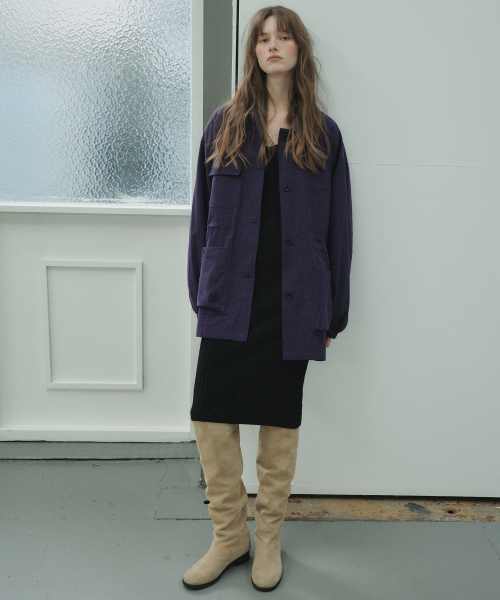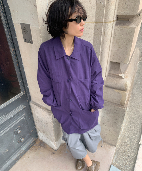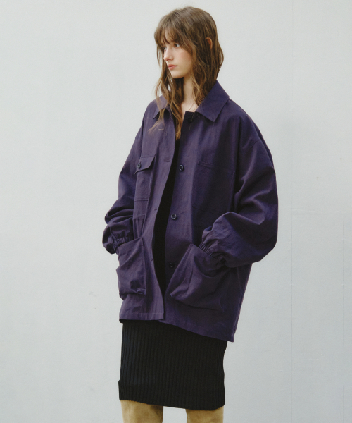 Linen Blend Utility Field Jacket_CTO155(Purple)