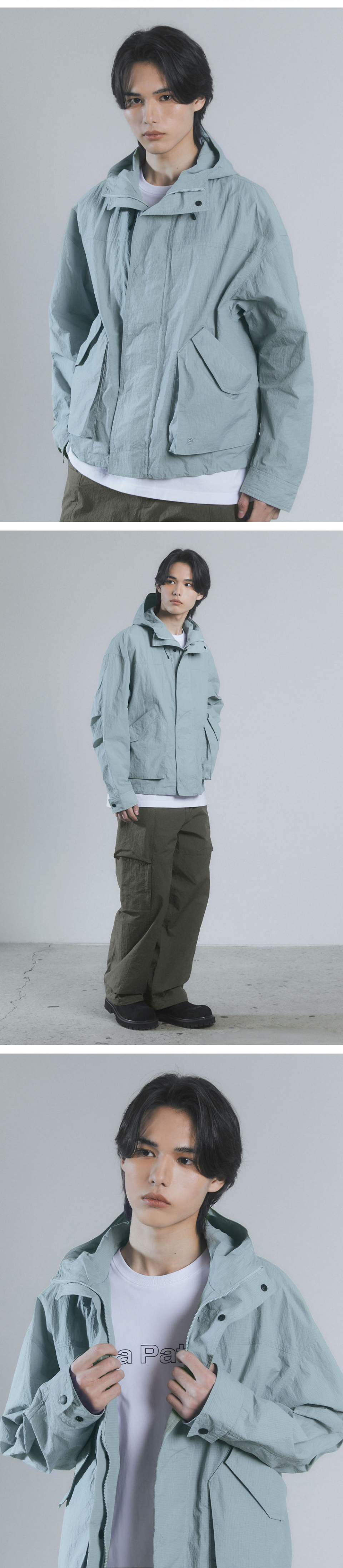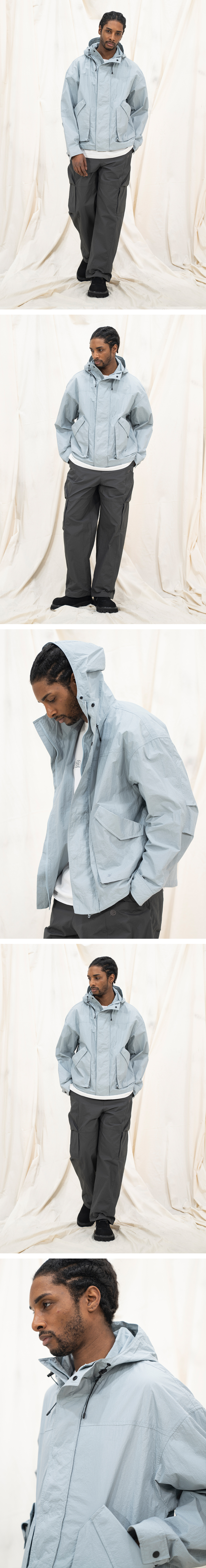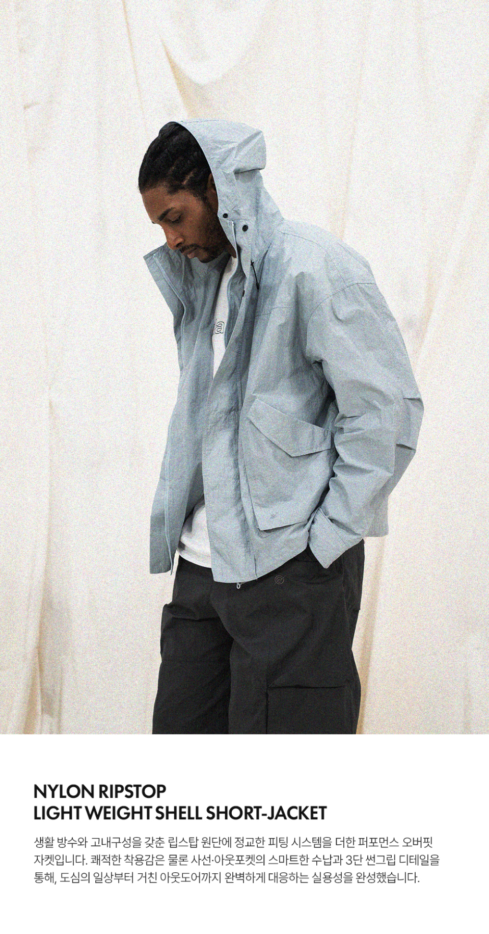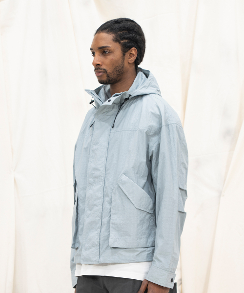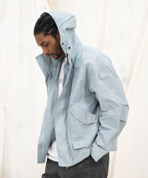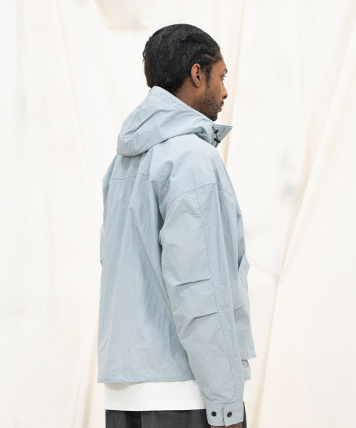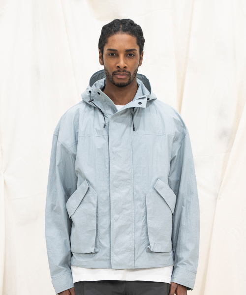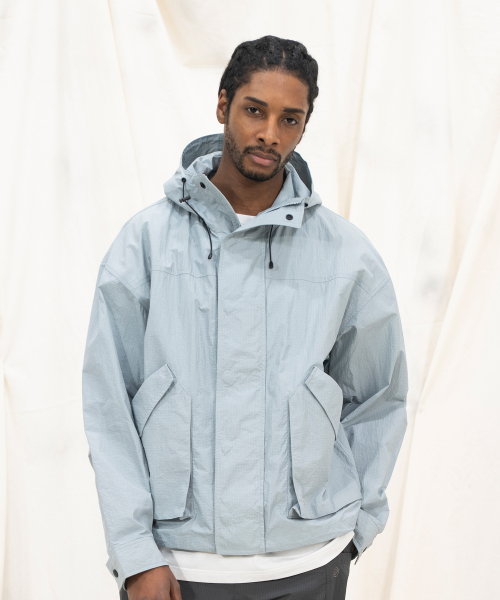 NYLON RIPSTOP LIGHT WEIGHT SHELL SHORT-JACKET - SKY BLUE