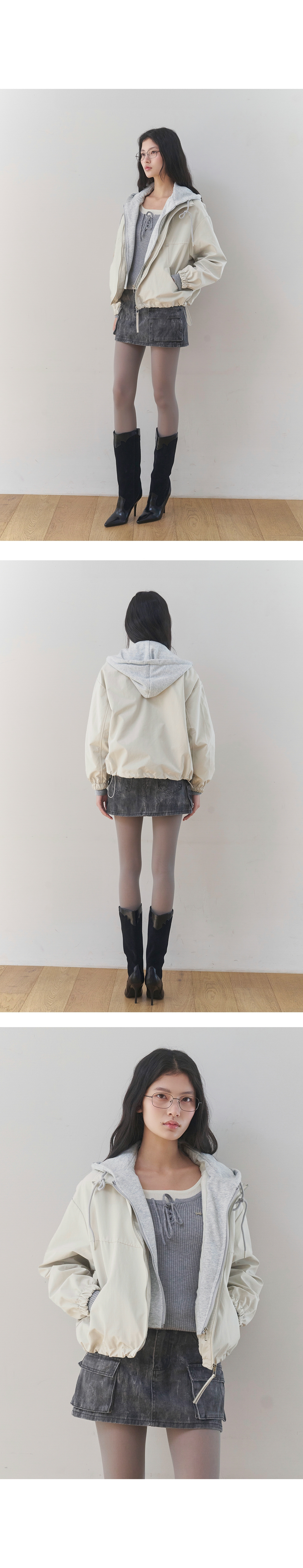 후드 배색 집업 점퍼 (LIGHT BEIGE)