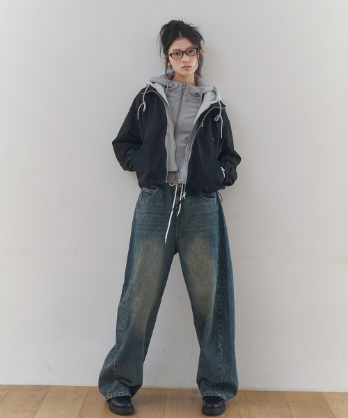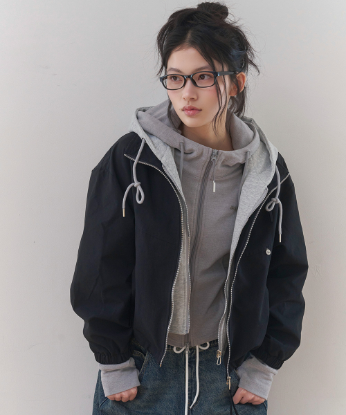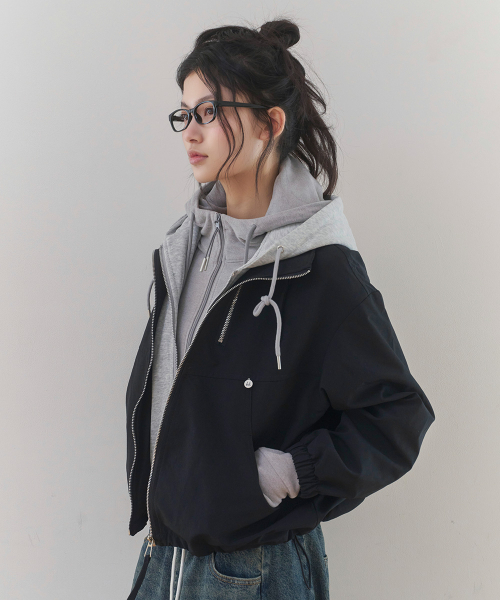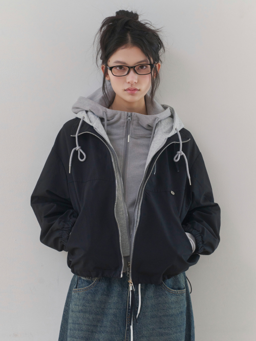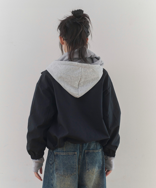 [주문폭주/일체형]후드 배색 집업 점퍼 (BLACK)