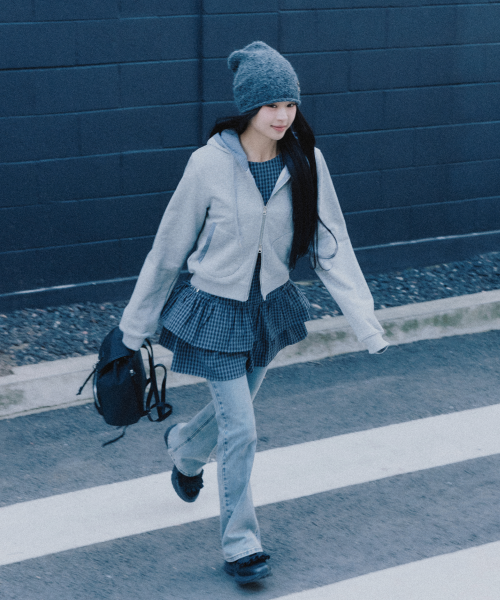 [서지수PICK] 체크배색 후드집업_MIWJMG426C