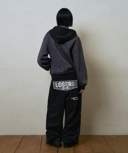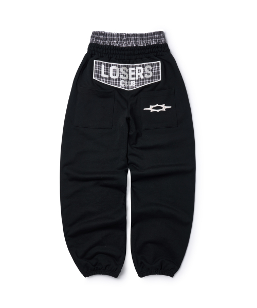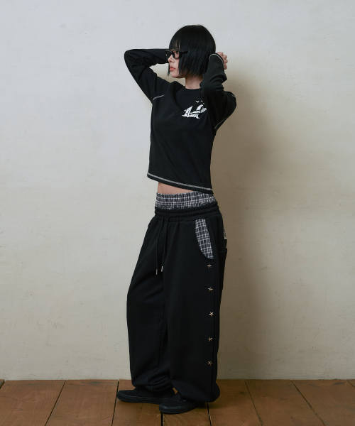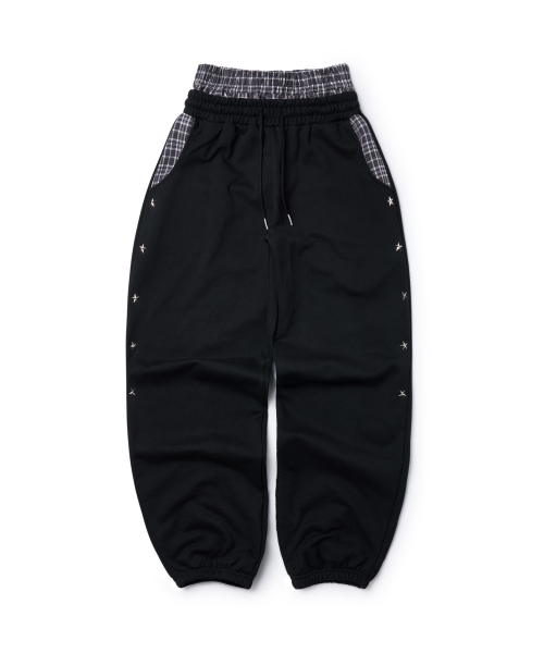 레이어드 스타 스터드 와이드 스웻팬츠 블랙