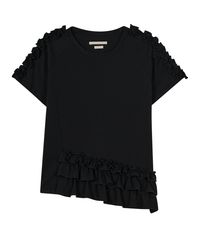 Asymmetrical Ruffle Trim Raglan Top [Black]