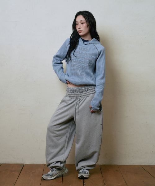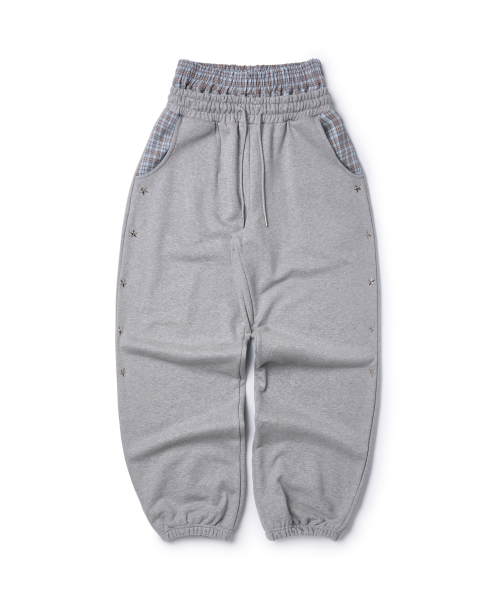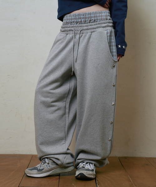 레이어드 스타 스터드 와이드 스웻팬츠 그레이