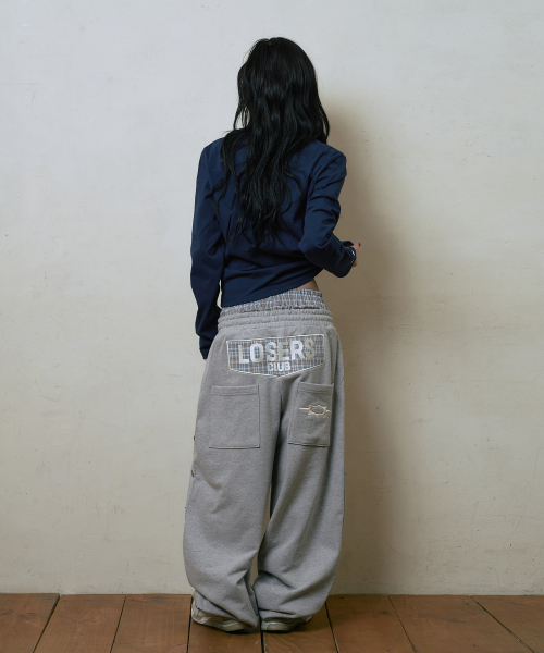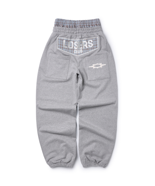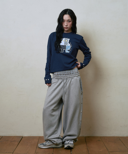 엔젤 아플리케 커브드 스웨트 팬츠[그레이]