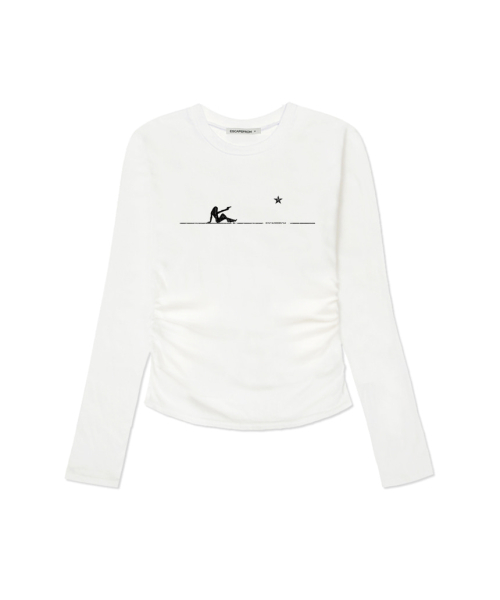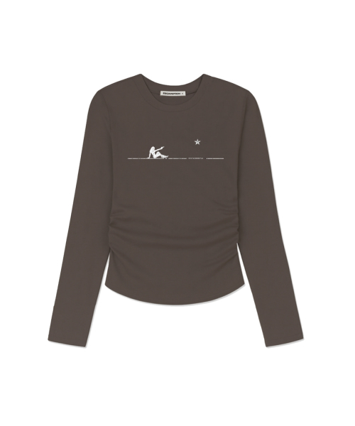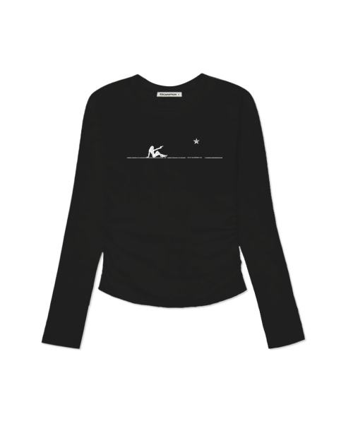 우먼 앤 건 프린트 슬림핏 셔링 롱슬리브 [4color]
