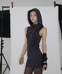 HIGHNECK DRAPE HOOD ZIPUP DRESS