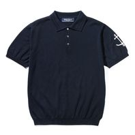 코튼 반팔 카라 니트 - 네이비