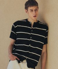 썸머 스트라이프 라운드 반팔 가디건 [블랙]