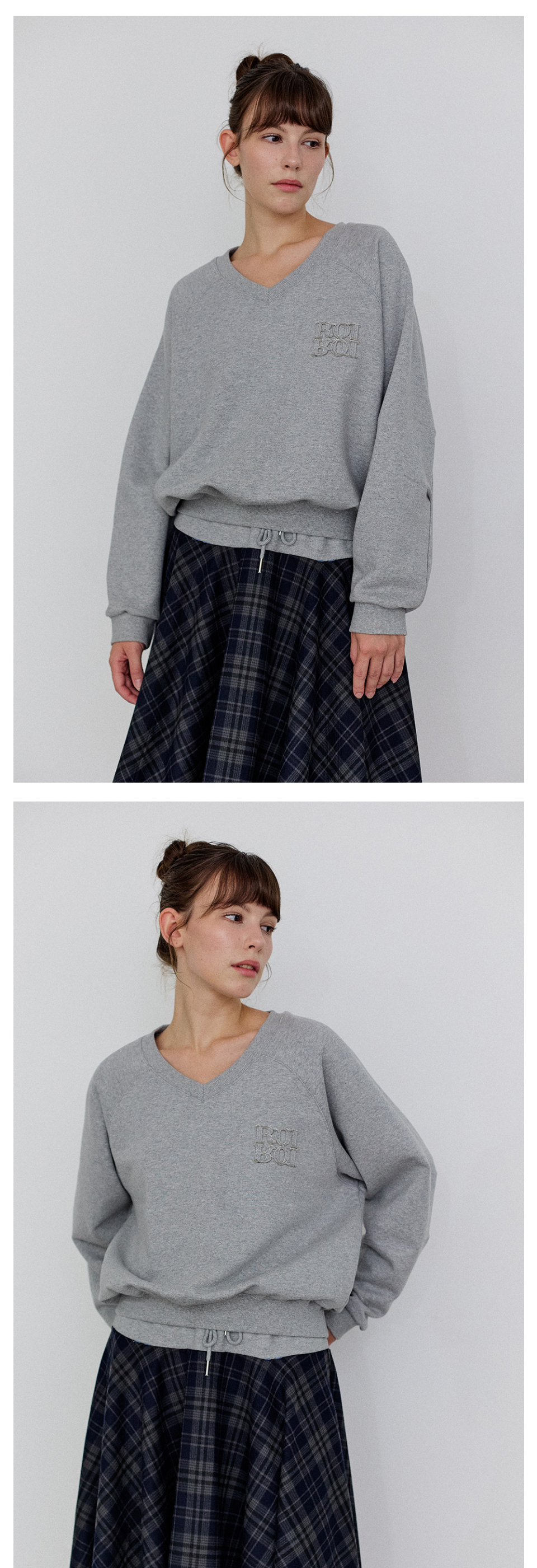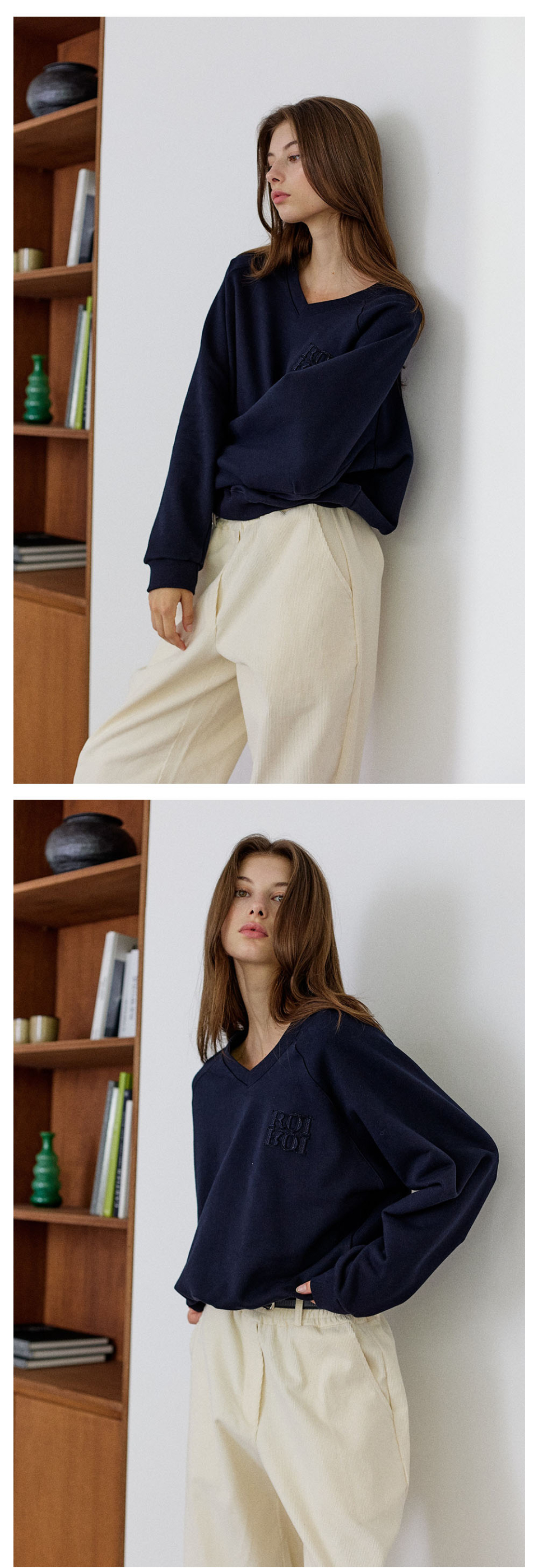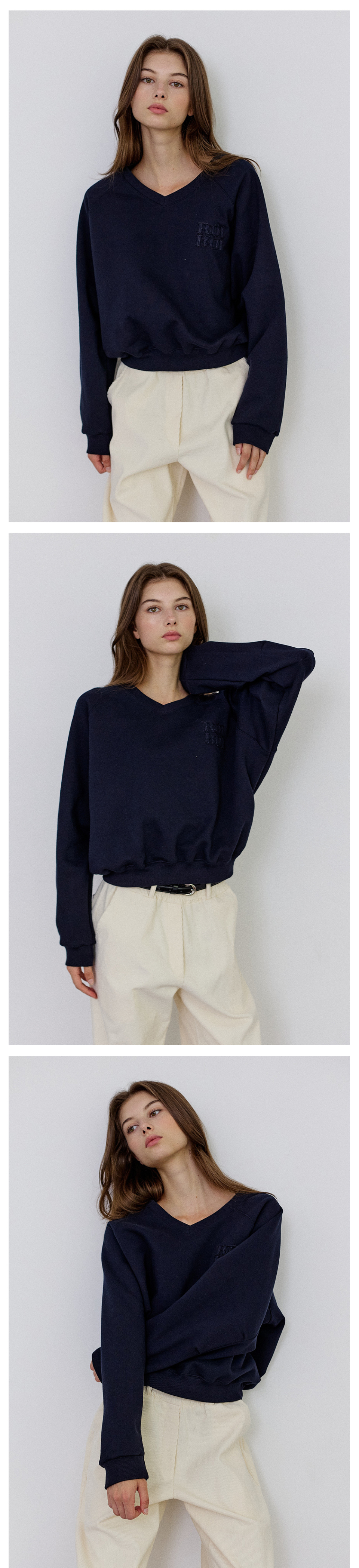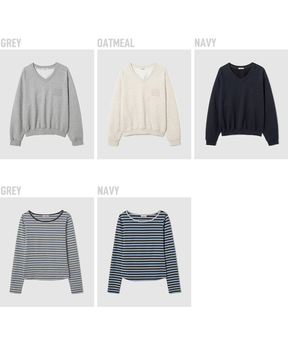 [SET] 브이넥 스웨트셔츠+스트라이프 긴팔티 3Colors