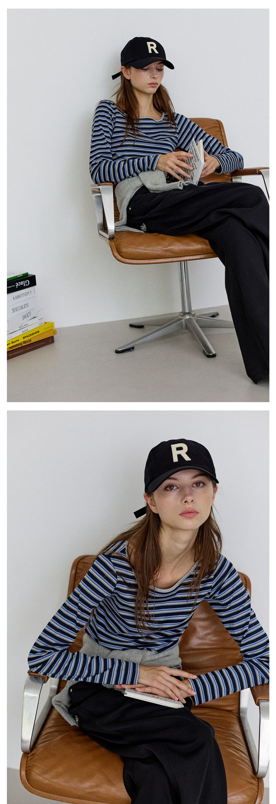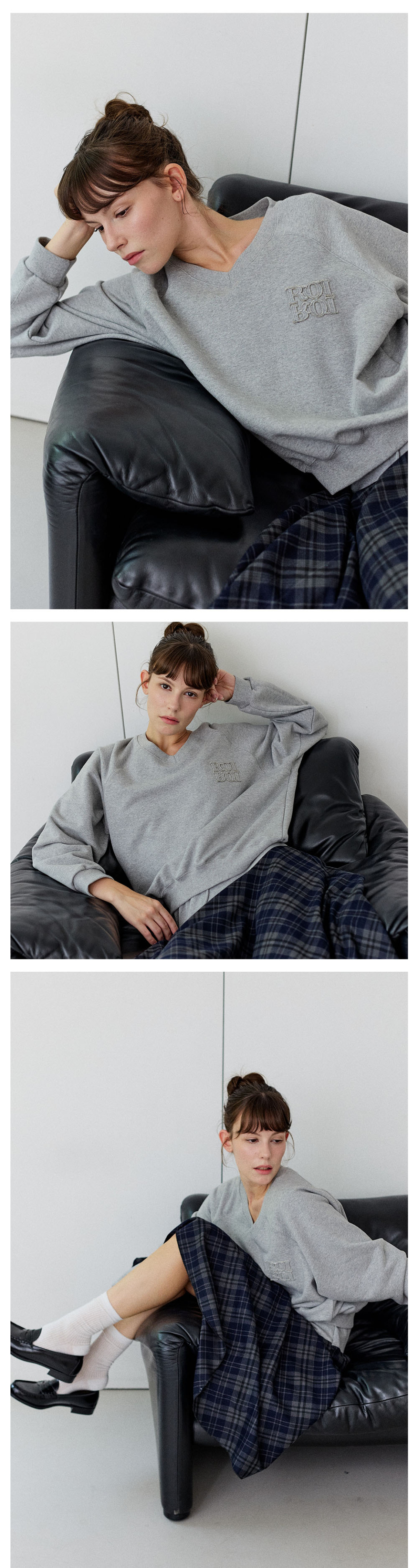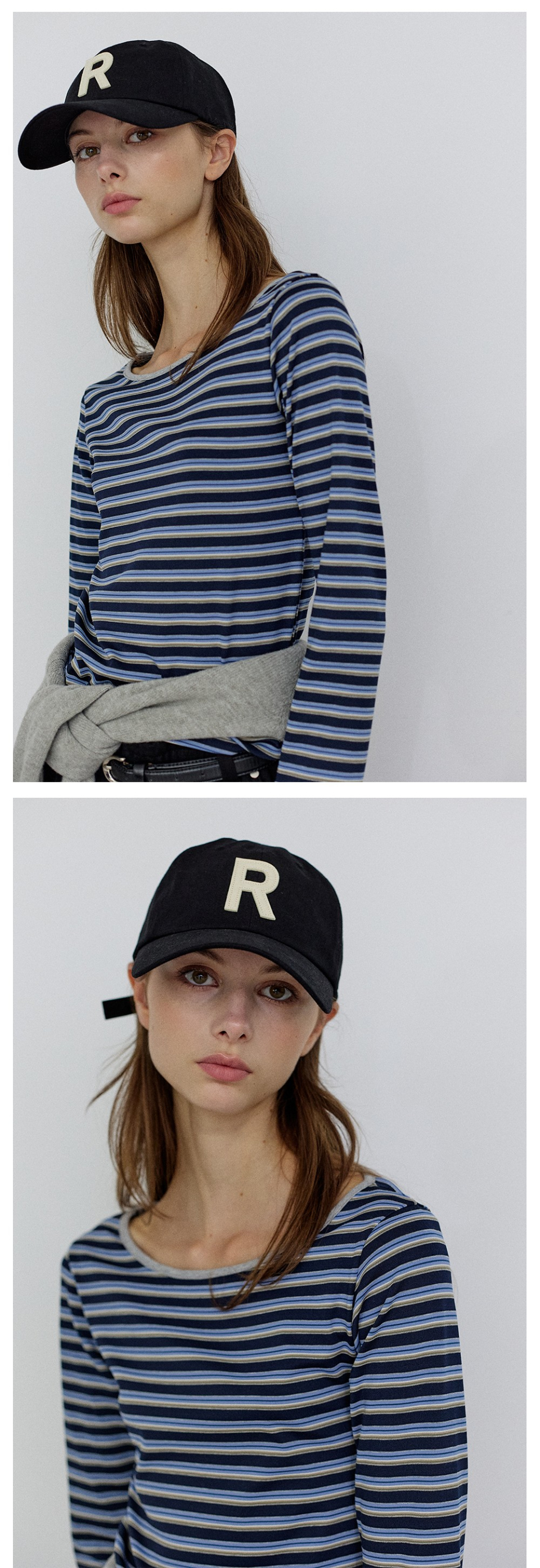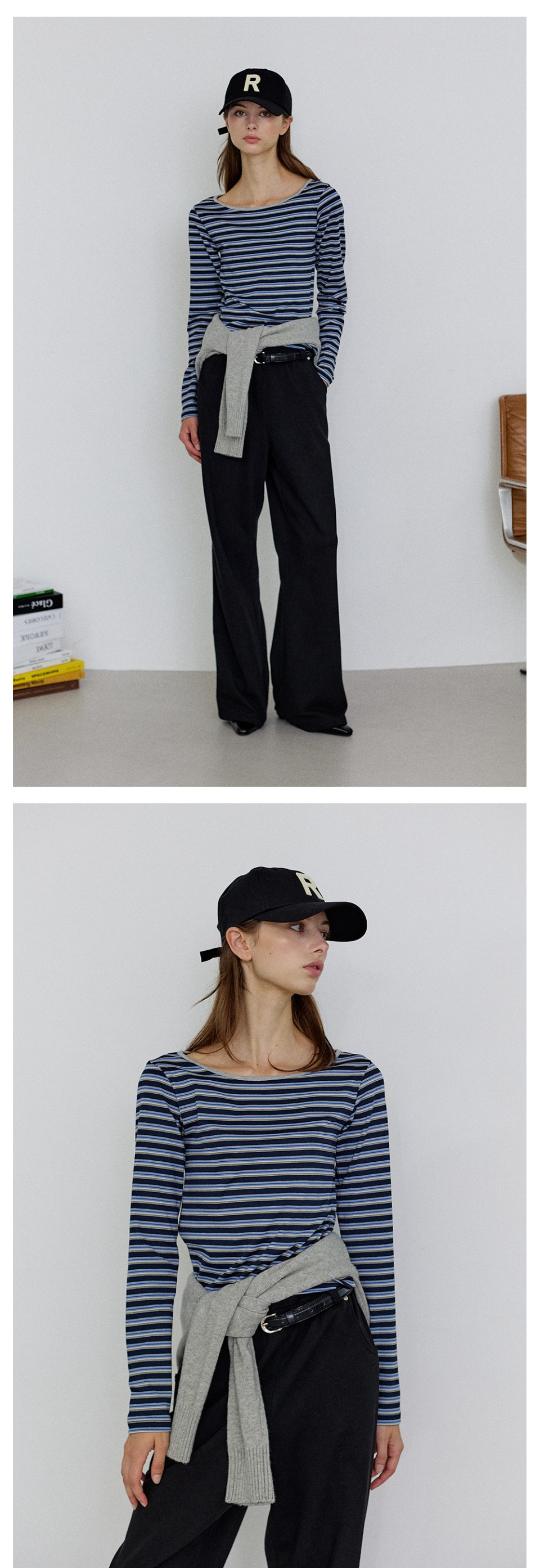 [SET] 브이넥 스웨트셔츠+스트라이프 긴팔티 3Colors