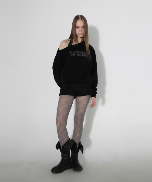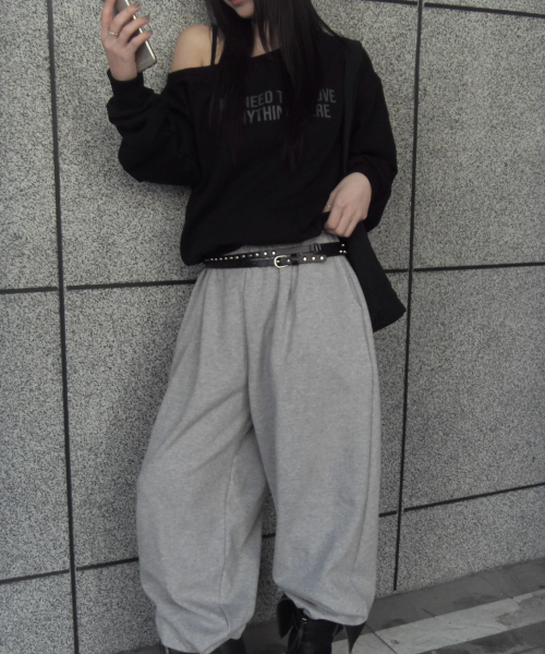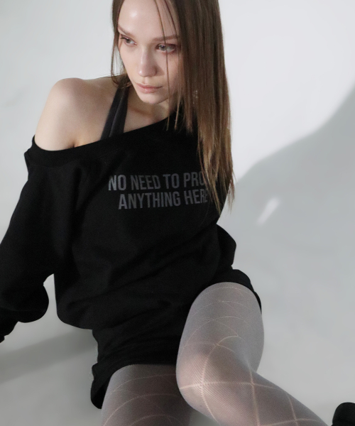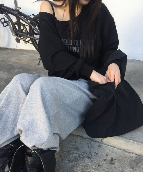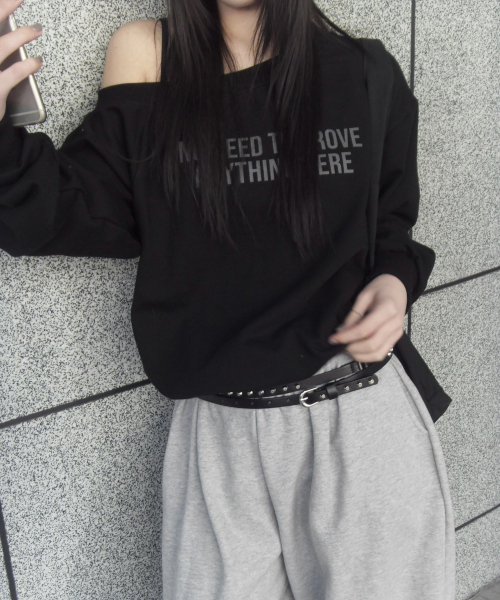 LETTERING OFF-SHOULDER TIE LONG SLEEVE_6COLOR