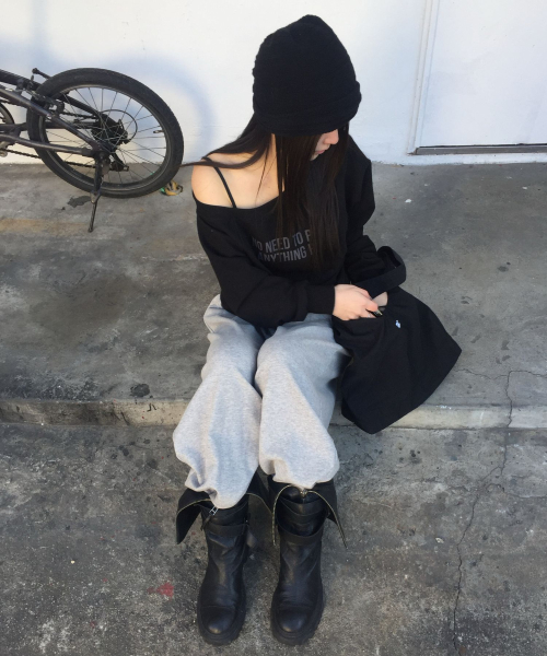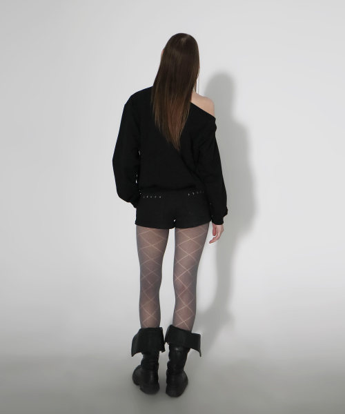 노니드 원숄더 맨투맨 블랙