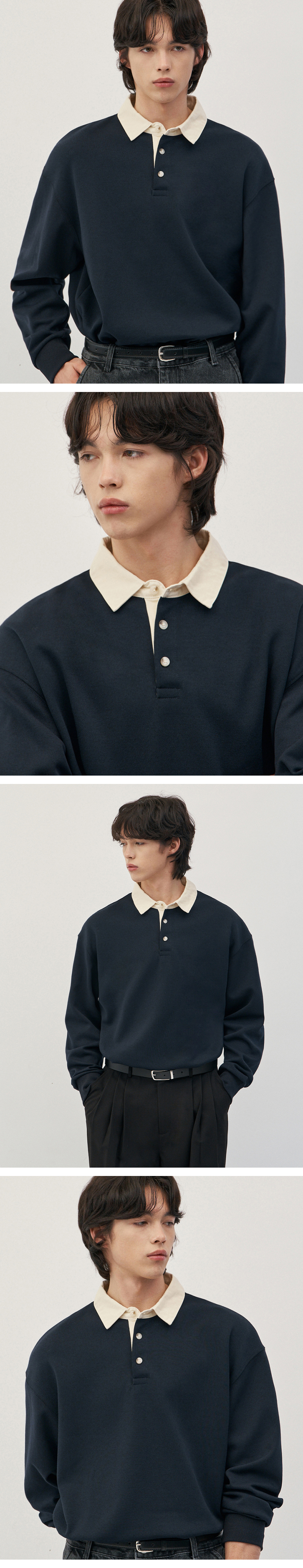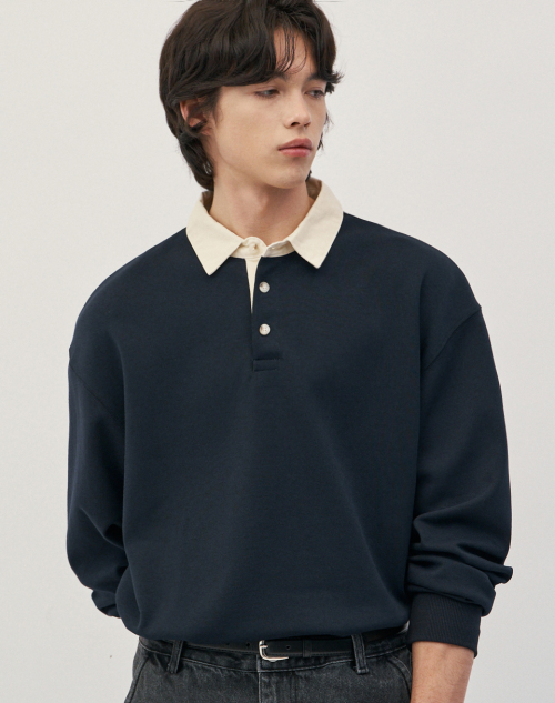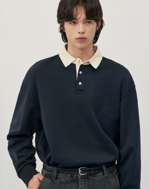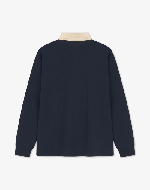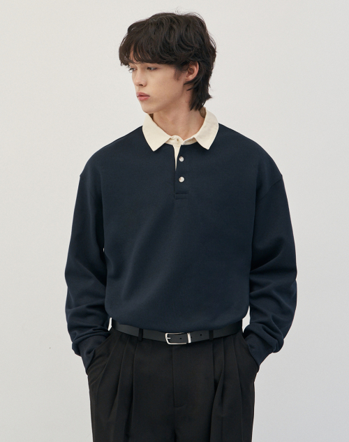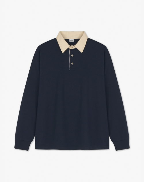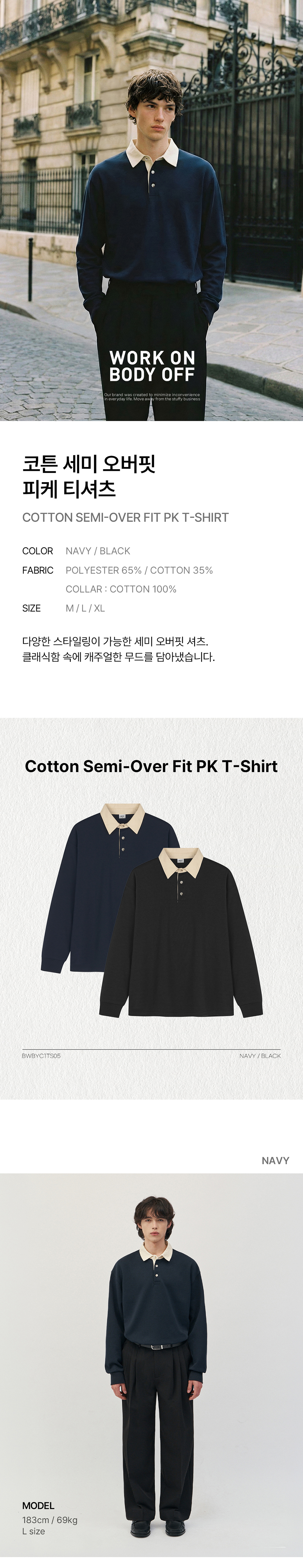코튼 세미 오버핏 피케 티셔츠 [네이비]