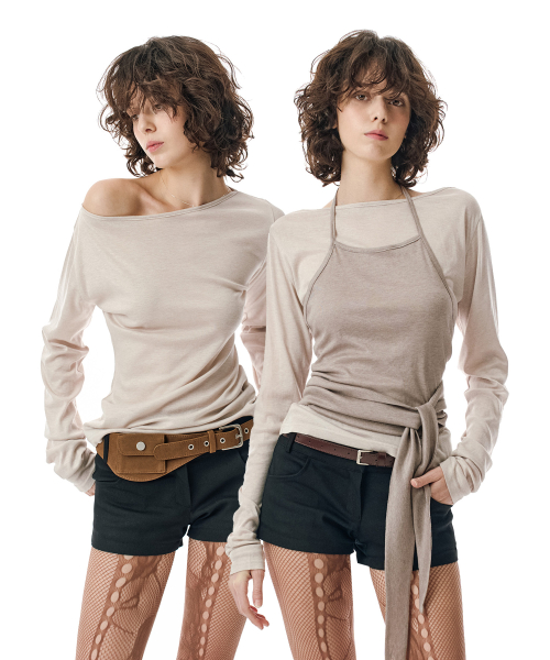 W.(SET)Tie Detail Layered Set Top [OATMEAL]_SEWTS025OATMEAL