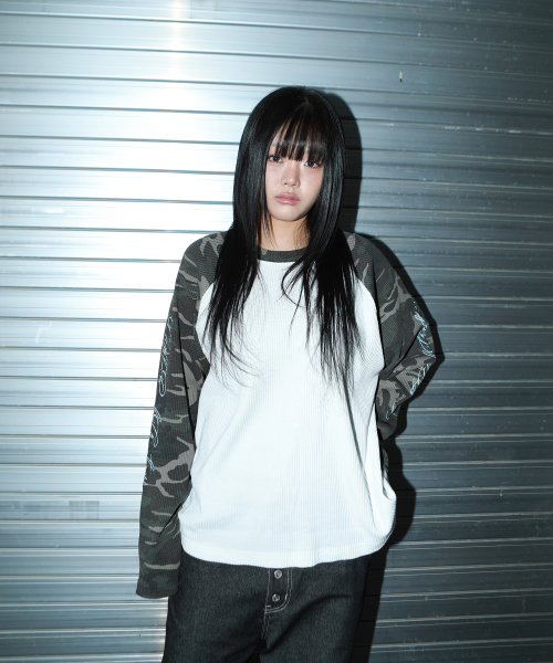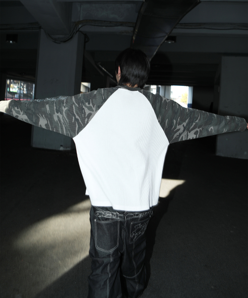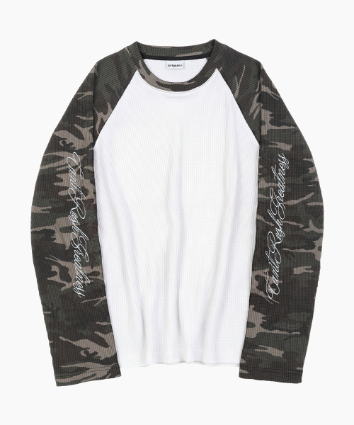 CAMO WAFFLE RAGLAN LONG SLEEVE WHITE