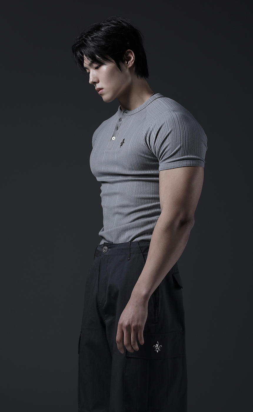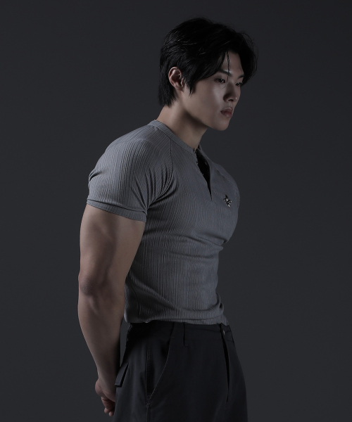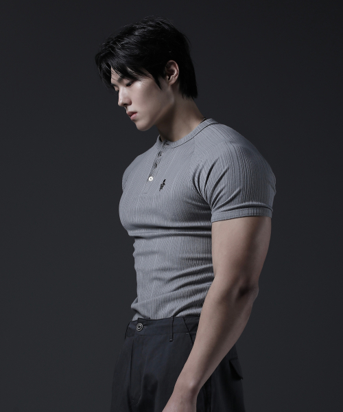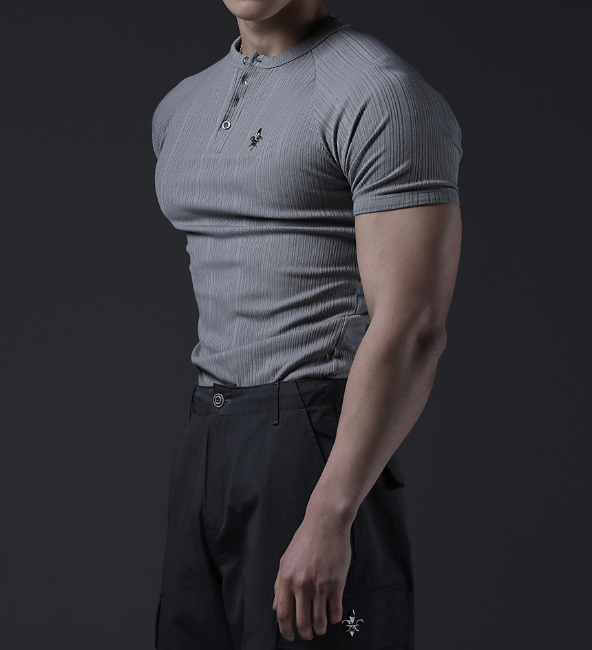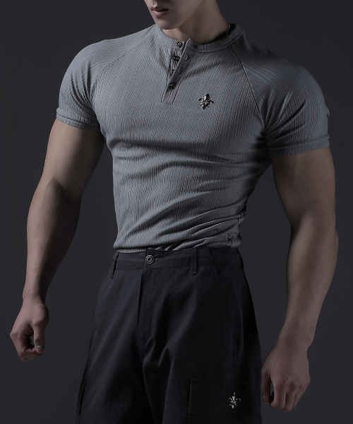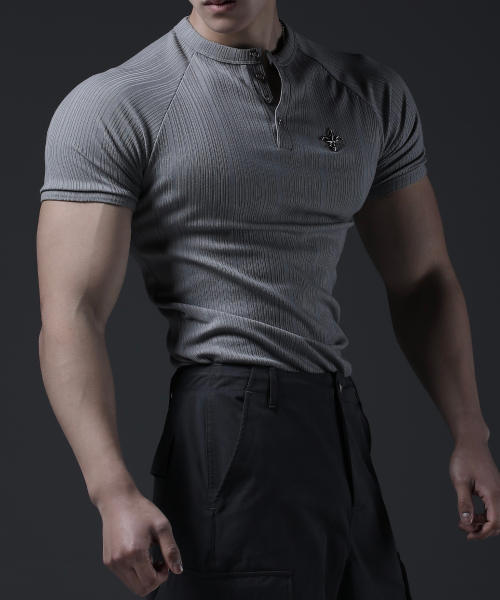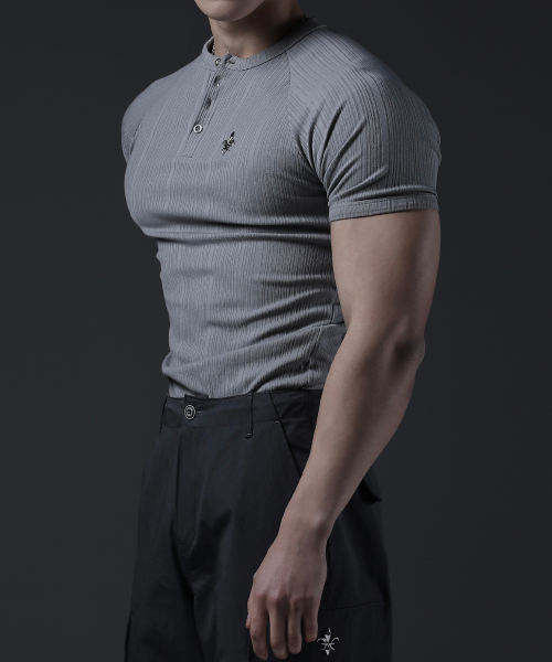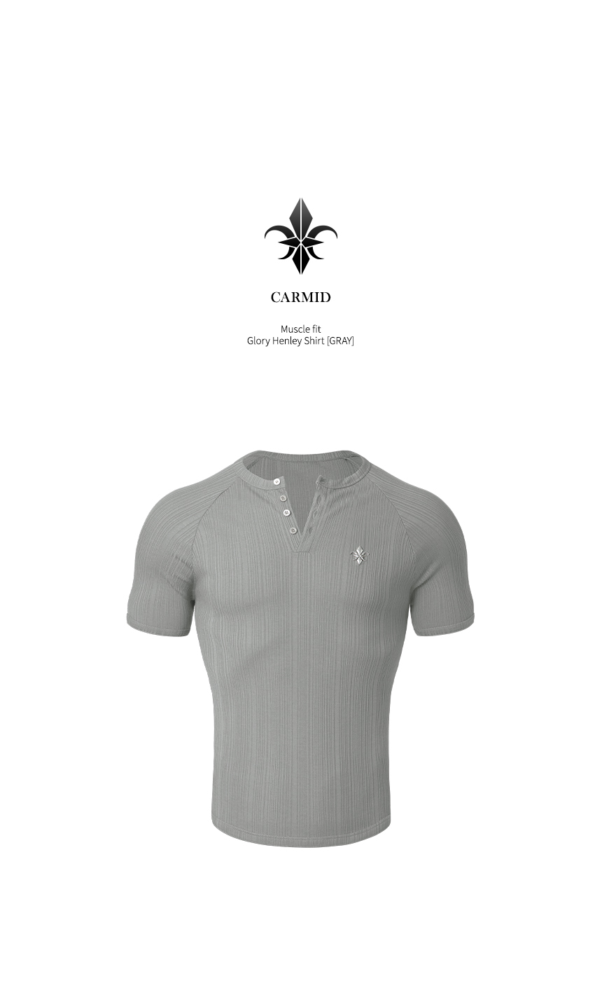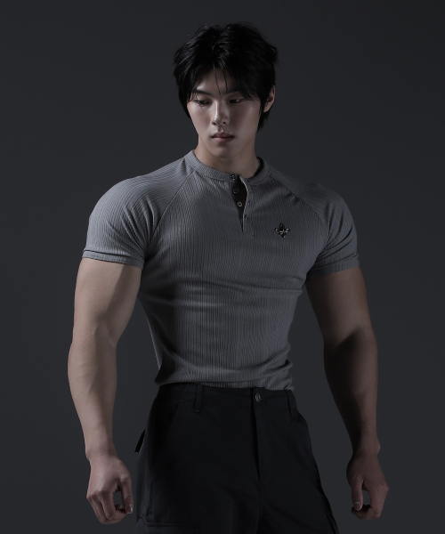 카미드 글로리 헨리넥 머슬핏 골지 반팔티셔츠 [그레이]